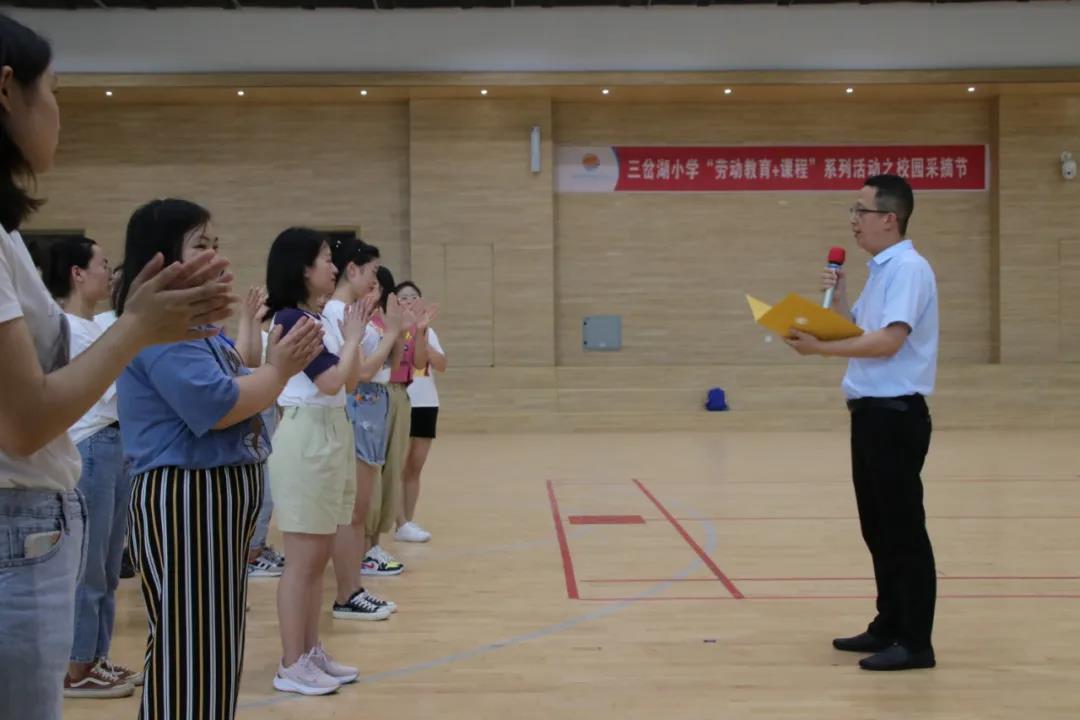 在陈林老师宣读比赛结果时,场上不时爆发出一阵阵欢呼声,无论有没有获奖,场上的队员们都大声地欢呼着,似乎每一次他(她)都是获奖者。最后,学校教科室主任周萍、教科室副主任袁希睿为此次趣味运动会获奖者颁奖。拿着自己用辛苦换来的证书和奖品,老师们欢笑着拍照留影。