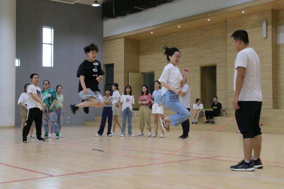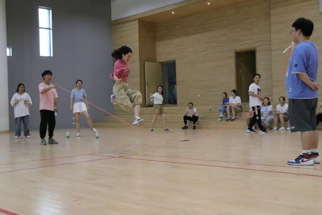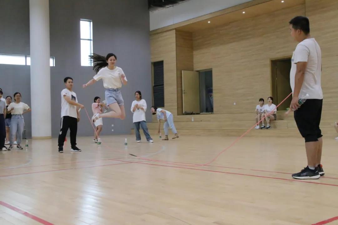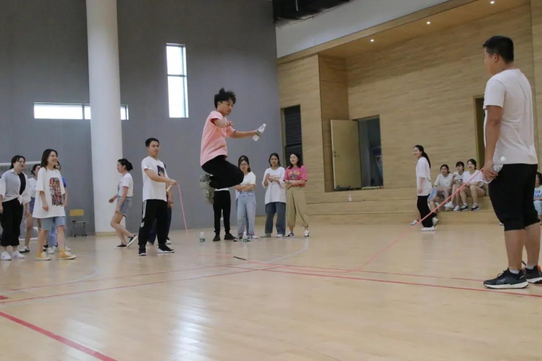 最后进行的是接力跳长绳活动。当长长的跳绳在空中飞舞时,各组老师们依次轻盈地从腾空的绳子下跳跃着穿过,那么轻盈,似一只只欢快的燕子。偶尔会有一声“哎呀”,绳子停止了舞动,参加跳绳的组员们似嗔却笑地走离赛场,没有责怪,没有抱怨,大家乐在其中。