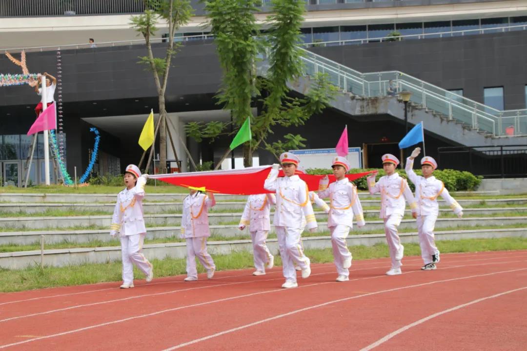 开学典礼在庄严的升旗仪式中拉开帷幕。升国旗、奏唱国歌,伴随着雄壮的国歌,鲜艳的五星红旗冉冉升起,孩子们心中的梦想扬帆起航。笔直的身躯,坚毅的眼神,满怀对祖国的热爱,也充满着对新学期的美好憧憬和希望。