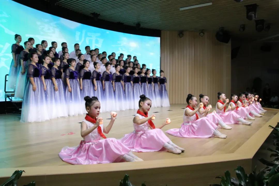 一首深情的诗歌朗诵和一曲合唱后,优秀教师代表赖霞老师作了慷慨激昂的发言,立志为东部新区的教育发展,为国家繁荣和民族振兴努力奋斗。全体教师在赖霞的带领下进行了庄严宣誓,一句句铿锵有力的宣誓声表达了大家忠诚于党的教育事业的信心和决心。此次活动在三岔湖小学校学生舞蹈《我们是祖国的花朵》中落下帷幕。