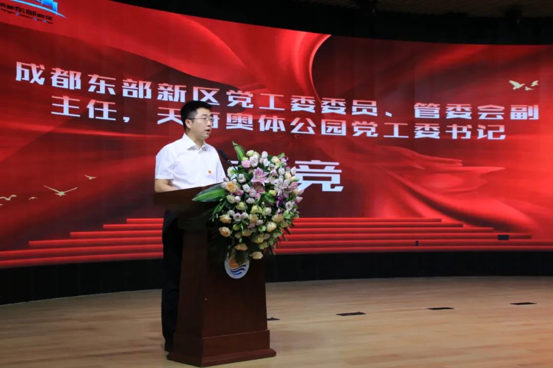 活动在师生合唱《教师之歌》中拉开帷幕。全体人员庄严肃立,齐声高唱国歌后,成都东部新区党工委委员、管委会副主任,天府奥体公园党工委书记杨竞精彩致辞。杨主任向奋战在立德树人一线的东部新区全体教职员工致以了节日的问候和美好的祝愿,对2021年全员育人、全程育人、全方位育人的新区教育新格局给予了高度肯定。杨主任向新区教育人提出四个“希望”:希望广大教师初心不改,当培养好学生高尚爱国情怀的引路人;希望广大教师坚守教育本真,当好认知生命魅力价值的风尚标;希望广大教师放眼学生未来,当好培养健康生活态度的航标;希望广大教师立足岗位实际,当好认真履行肩头责任的奋进者。