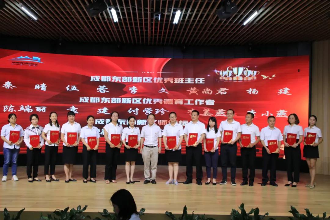 为鼓励东部新区教师昂扬向上,彰显东部新区教育实力,激发东部新区教育活力,在第37个教师节到来之际,成都东部新区文化旅游体育局在三岔湖小学校隆重举行了“赓续百年初心 担当育人使命”2021年教师节活动。成都东部新区管委会副主任杨竞、东部新区各局(部)领导、镇(街道)分管领导、各督学责任区负责人、各学校(园)长以及受表彰教师参加了此次活动。我校获评“成都市优秀班主任标兵”的刘丽英老师、获评“成都市教坛新秀”的陈林老师、获评“东部新区教育系统优秀党员”的李琴老师受到表彰。