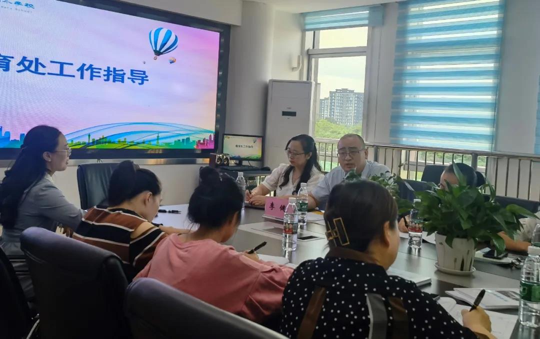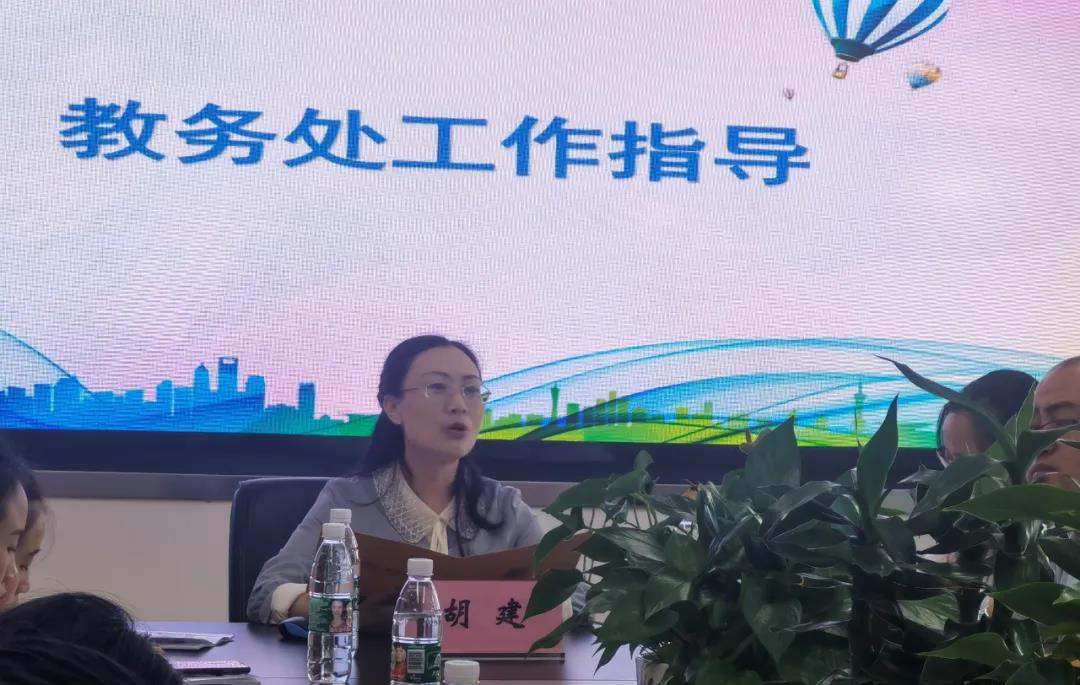 在接下来的部门工作指导中,德育处主任李健、教务处主任胡建、教科室副主任袁希睿分别就一年级德育工作、教学工作、安全常规进行了工作指导。