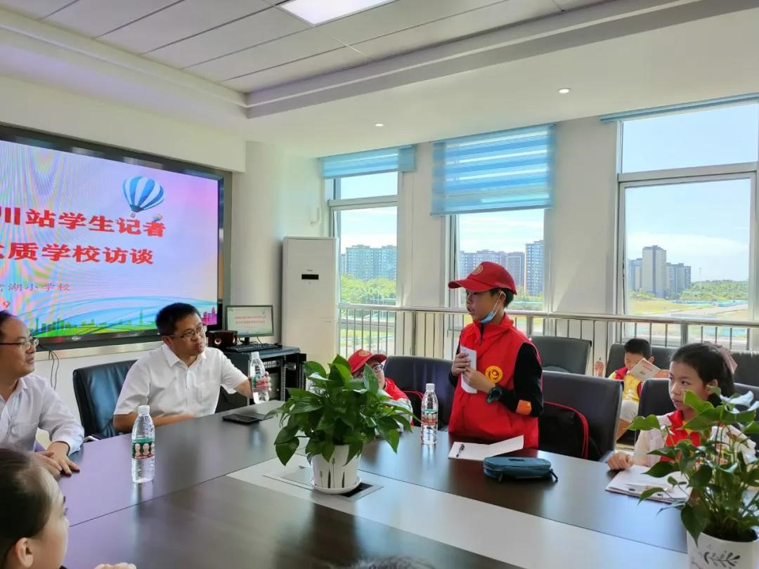 接着,在会议室里,汪校长对郭庭斌站长、冯丹主任以及小记者们的到来表示热烈欢迎,并对学校基本情况和近期取得的成绩做了简要介绍。他指出:学校秉承“让每一个生命自由生长”的办学理念,以德育为首、智育为基、体育为根,美育劳动教育为要、创新教育为品,五育并举,促进学生全面发展。交流结束后,小记者们从自己的视角出发向汪校长提出了各种各样的问题,这些问题涉及学校发展、双减政策、社团活动等多个方面,汪校长和蔼可亲地给小记者们一一作了回答。