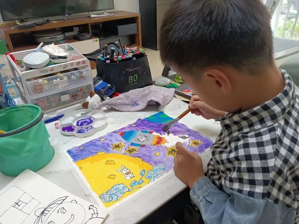 这次别样的美术活动,增添了我们浓浓的中秋之情。孩子们,待“疫”过天晴,让我们一起相约回到美丽的校园,共同描绘美好的明天。