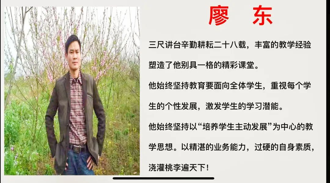廖东老师作为师父代表从五方面表达了对青年教师的期望:一懂得“三人行,必有我师”;二爱岗敬业;三抓住机遇,业精于勤;四教学相长,切磋提升;五教育需要爱。