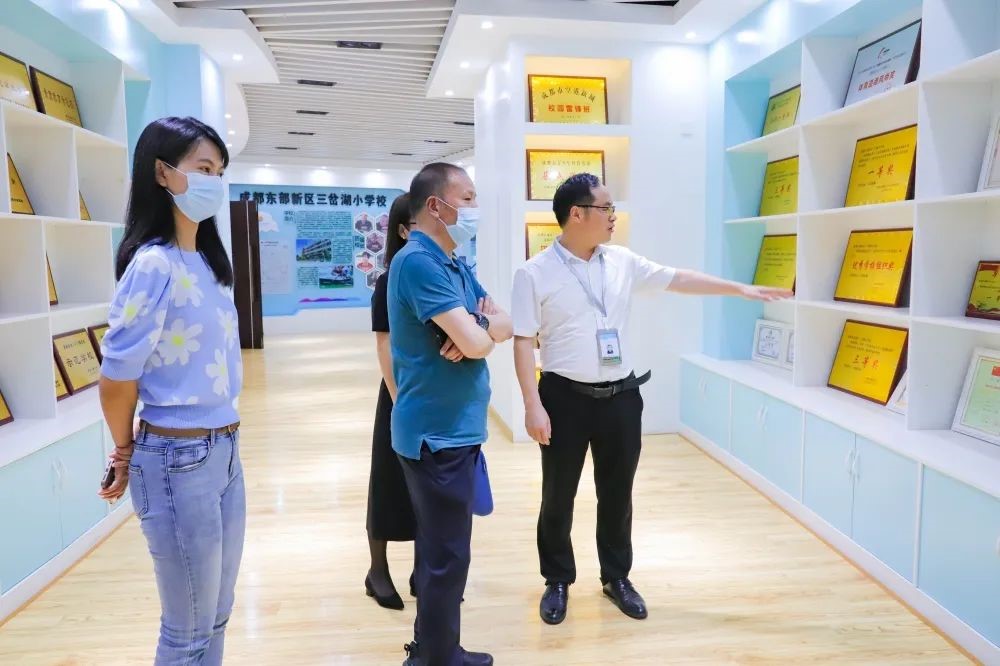 首先,副校长汪辉勇陪同吉利学院一行人在学校小小解说员的热情带领下依次参观了我校的室内篮球场、荣誉室、蓝色环湖大厅、德育展示厅、图书室、功能室、空中农场、校园文化建设等。吉利学院一行对我校高端大气的教学楼、应有尽有的设备设施、浓厚的育人氛围和精细化的学校管理赞叹不已。