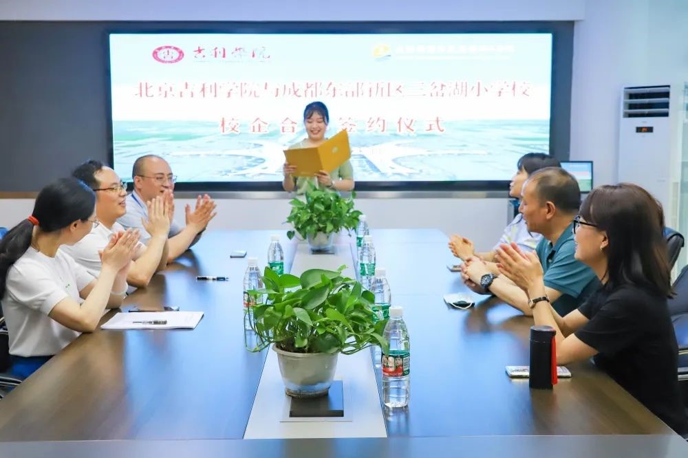 树阴满地日当午,梦觉流莺时一声。2022年6月22日,成都东部新区三岔湖小学校与吉利学院举行了校企合作签约仪式。三岔湖小学校副校长汪辉勇、德育处主任李健、教务处主任胡建,吉利学院校长助理刘召、校地合作处处长常亮、教育系主任助理李妍伶出席了本次签约仪式。
