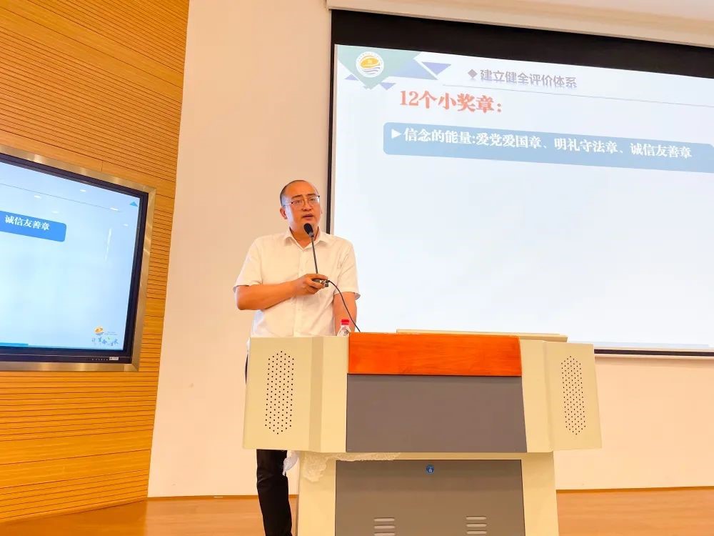 李建主任作了《厚德载物 逐梦未来》的专题报告。李主任向吉利学院的同学们介绍了三岔湖小学校的特色班级文化——雷锋班建设,让同学们对班级建设有了新的思考,特色班级文化建设的种子埋进了他们心中,必将能助力这些未来教师的发展。