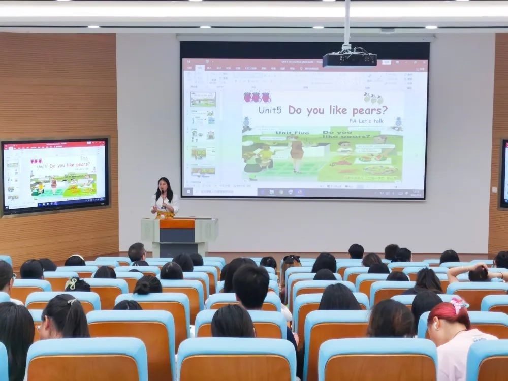 卿运美老师带来了《精心设计课堂教学 凸显学生学科素养(例谈英语教学设计)》的专题讲座。卿老师将英语学科素养的分析与自己的课堂实例结合起来,向同学们分享了一线英语教学中要注意的问题和应该掌握的方法。