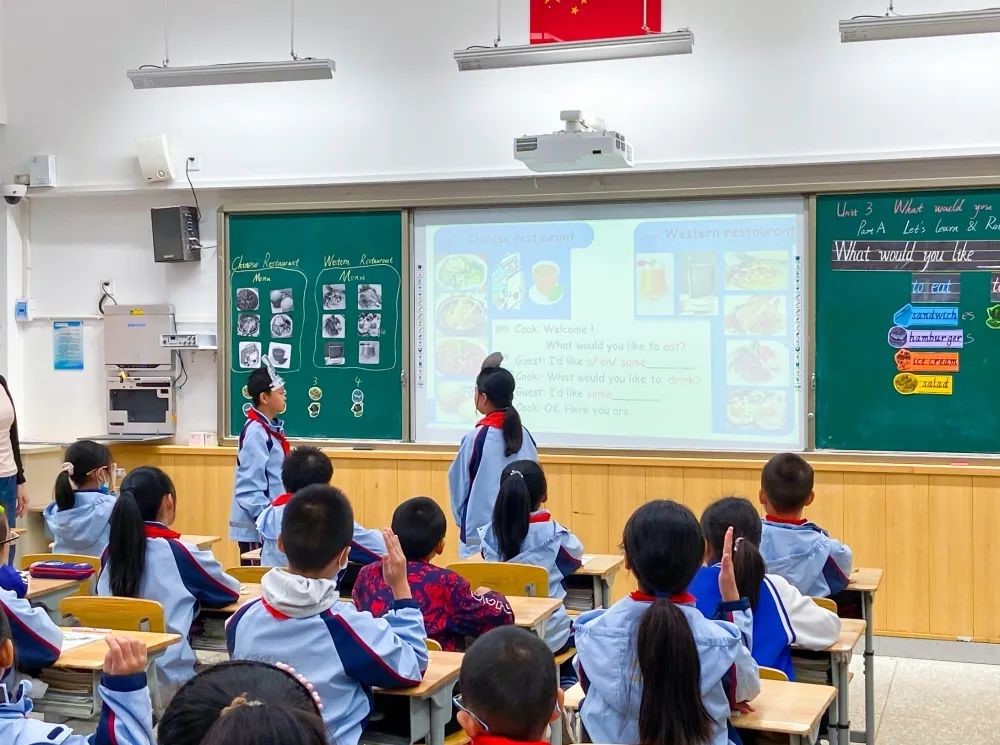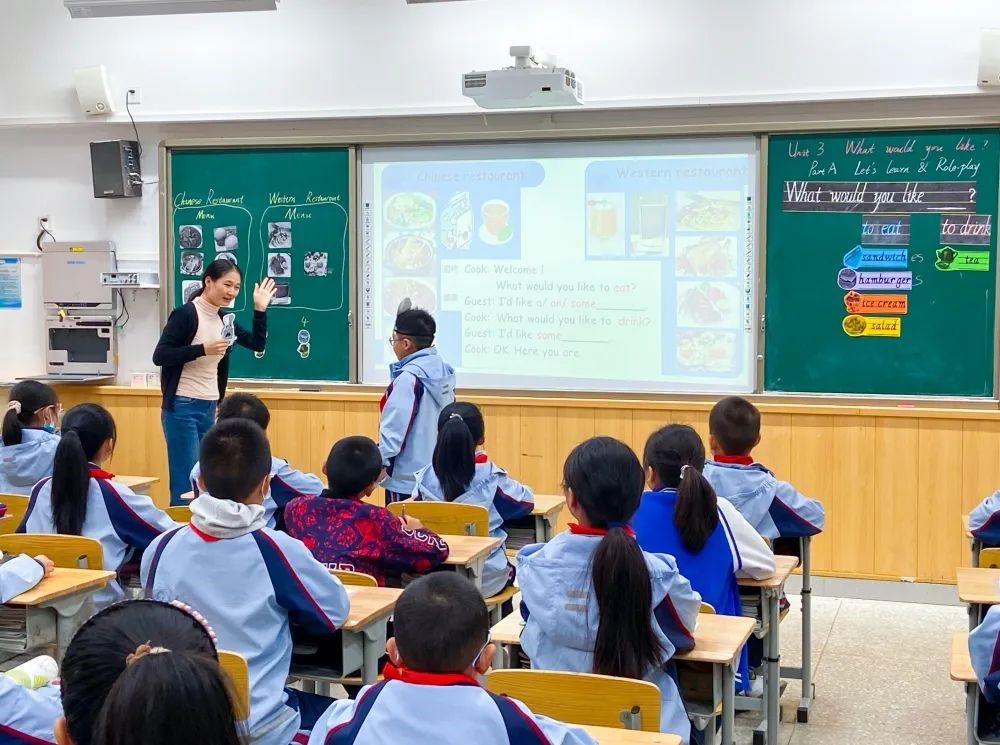 课堂是学校教育的核心,是教学的主阵地,是教师成长的舞台。在“双减”背景下,为了使教师更新教学理念,转变教学方式,提高课堂效率,10月18日上午,成都东部新区三岔湖小学校开展了英语示范课活动,教务处副主任贾小波和全体英语教师参加了这次活动。由汪钰老师给大家带来了一堂精彩的示范课——Unit 3 What would you like Part A.