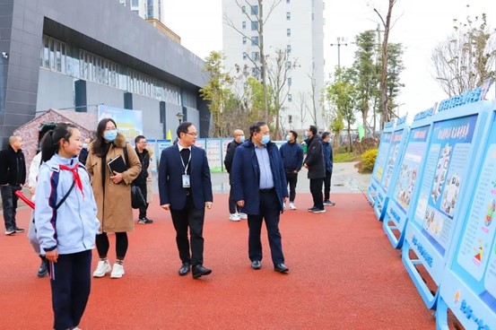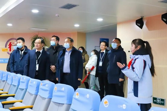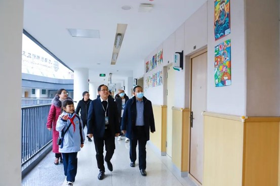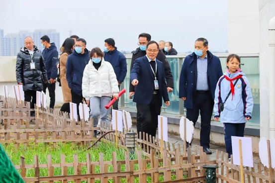 边院长一行在学校小导游的热情带领下依次参观了我校的室内篮球场、荣誉室、蓝色环湖大厅、德育展示厅、图书室、功能室、空中农场、校园文化建设等。交流团一行对我校高端大气的教学楼、应有尽有的设备设施、浓厚的育人氛围和精细化的学校管理赞叹不已。