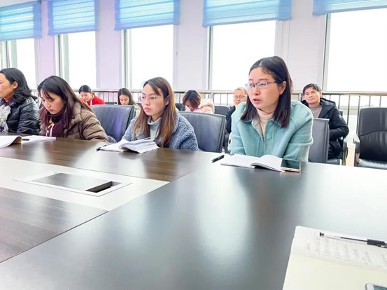 接着,胡建主任围绕老师们的讨论提出了她的见解。胡主任提到,在日常教学中要注重学习方法的指导,在新课教学中学方法,在巩固练习中用方法。她讲到,老师们还应该认真备课,紧紧围绕教学目标组织学习活动,保证教学效率;同时,还应该提高教学管理艺术,加强家校沟通,尽量采用激励、正面引导的方法。胡主任强调,教学应该卷入全体学生,以丰富多彩的活动吸引更多的学生,让学生能力得到充分发展。