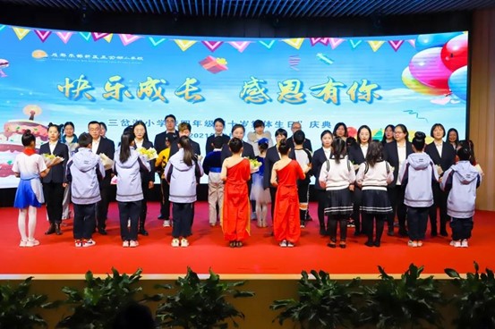 最后,四年级的老师们精心准备了节目《生日祝福歌》,既为孩子们送上了美好的祝福,也寄托了老师们殷切的期望,全场不时响起阵阵热烈的掌声。