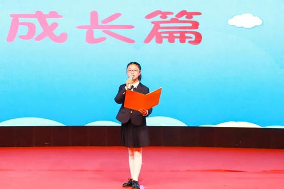 学生代表贾景晨和李佳谕绘声绘色地分享了自己的成长故事,字里行间,表达着对家人、老师、学校的感谢。一个个充满爱意的文字融化了大家的心。