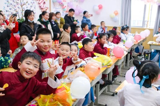 集中活动结束后,各班同学回到教室,共同分享生日的甜蜜。为了给孩子们营造温馨、浪漫的环境和氛围,老师和家长代表早早把教室进行了精心、特别打扮。孩子们在这里尽情享受美好、精彩、难忘的瞬间,大家一起表演节目、分享蛋糕、述说心中的感激之情。孩子们的欢声笑语响彻整个校园。
