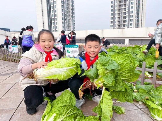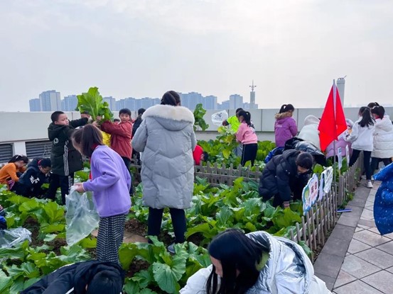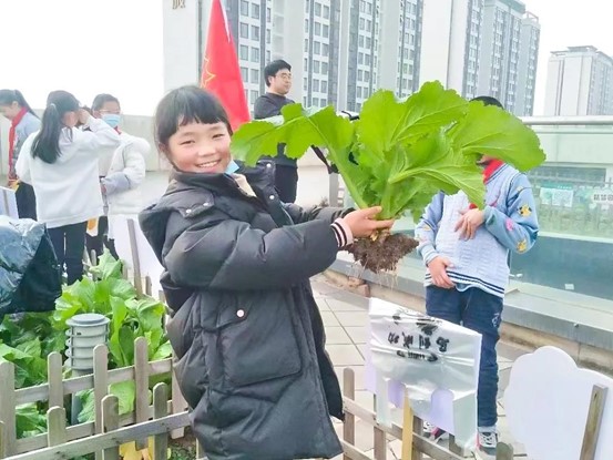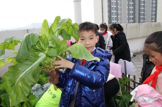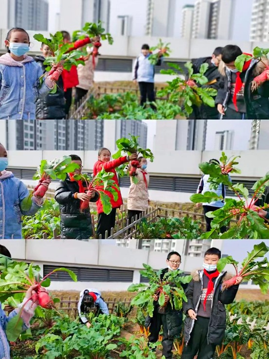 播种、除草、浇水、施肥、收获、烹饪、品尝,每个环节学生全程参与,即体验到了农耕的艰辛、理解了“粒粒皆辛苦”的涵义,也从互助合作、收获硕果等活动过程体会到了劳动的快乐,感受到了冬日丰收的喜悦,大大激发了热爱劳动的情感。“思源农场”不只是孩子的“劳作场”,更是性格品质形成的“体验田”。在丰收节中,不仅收获了青菜、萝卜,更结出素质教育香甜的“果实”,为每一位孩子的幸福成长奠定坚实基础。