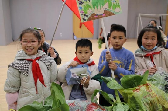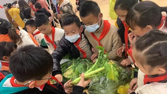 随后,“岔小”孩子们在老师带领下将所收获的蔬菜打包,称重。收获可真还不少呢!
