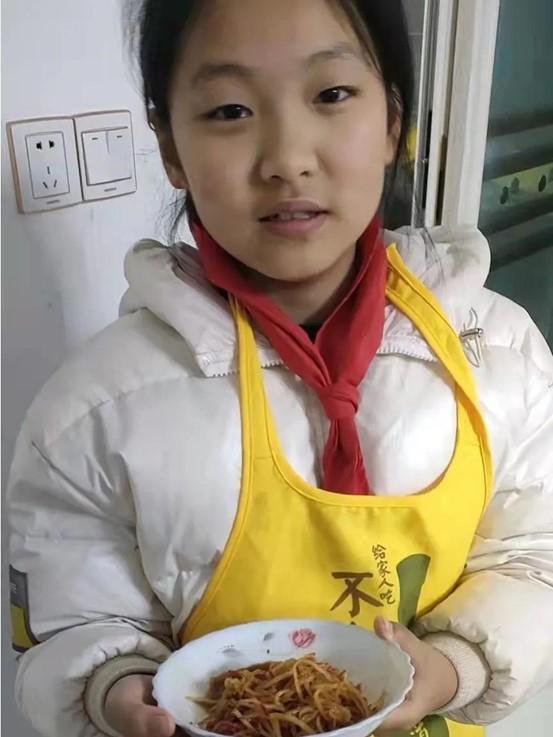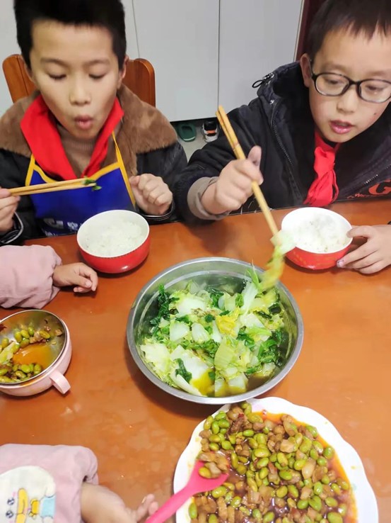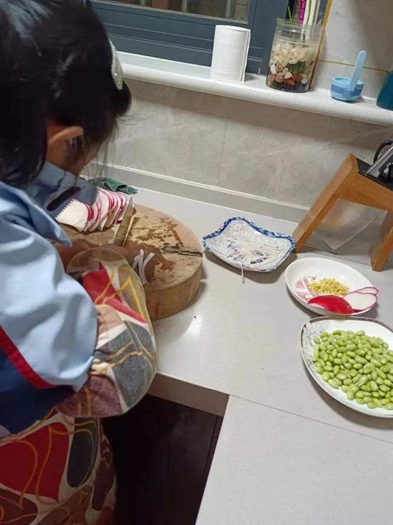 家长们提着蔬菜,喜气洋洋。当晚,孩子们回家在家长指导下把采购的蔬菜,经过洗涤、创意搭配、加热烹饪,鲜嫩的蔬菜化身为各色美食。