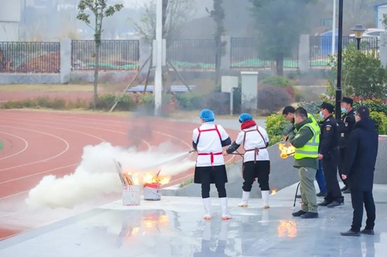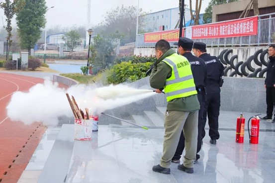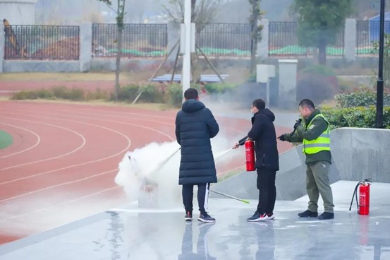 消防安全疏散演练结束后,学校还邀请教职工参与了灭火示范演习,在演习中向全校师生宣传了灭火器的使用方法,提高了消防应急处置的能力。消防器材实操讲解让同学们更加深入、直观学习了消防知识,这也使学生们的学习更加积极、主动。(图12—16)