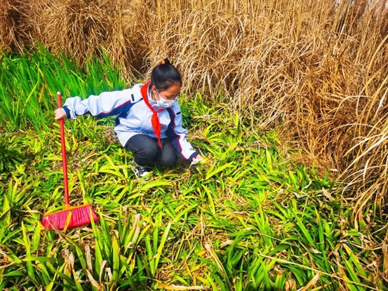 活动中,队员们身穿三岔湖小学校学雷锋志愿服务队的马甲,手握劳动工具,分工合作,热情高涨。有的拿起扫帚打扫地面,有的拿起簸箕清理垃圾,还有的捡拾草坪中的杂物……小手捏着垃圾,脸上累得通红,但却透着激动,漾着兴奋。