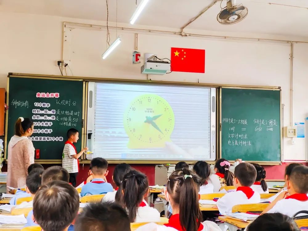 第一堂课是由白莎莎老师执教的二年级《奥运开幕》,白老师立足学生核心素养的发展,精心研制“预学指导单”,指导孩子们在课前对新知识进行了预学。课中,白老师有效组织孩子们进行讨论、交流,分享预学收获,利用预学效果检测单,及时发现并解决孩子们存在的问题。白老师注重引导学生自主探究与合作学习,让学生学会知识的同时,有效提升了孩子们的学力。