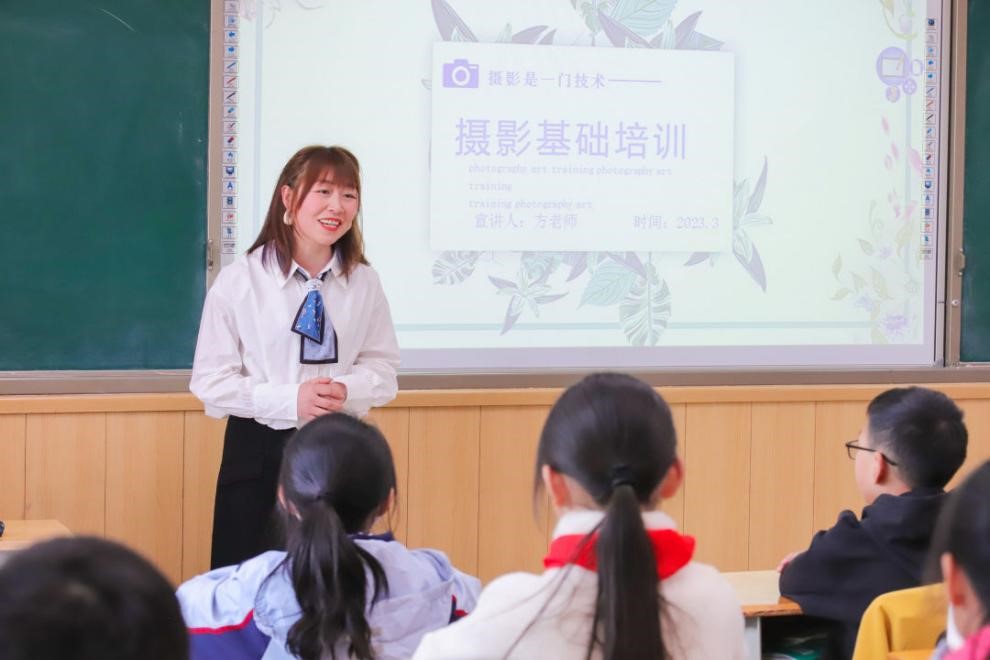 最后,校级家委会的全体成员在汪校长和李主任的带领下,来到了五年级六班,走进学生课堂。家长代表方延琼结合自己的兴趣爱好,给孩子们带来了一堂别开生面的家长课堂——摄影基础培训。方延琼家长围绕摄影的方法与技巧、背景的巧妙选择、光线是摄影的生命三方面耐心、细致地教大家如何拍摄,相信同学们会用他们独特的视角去发现更多美好的画面,记录动人的时刻。