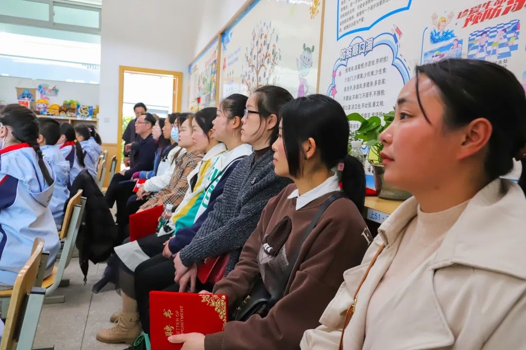 一纸聘书,一份责任,汪校长和汪主任为当选的各校级家委会成员颁发聘书并合影留念。