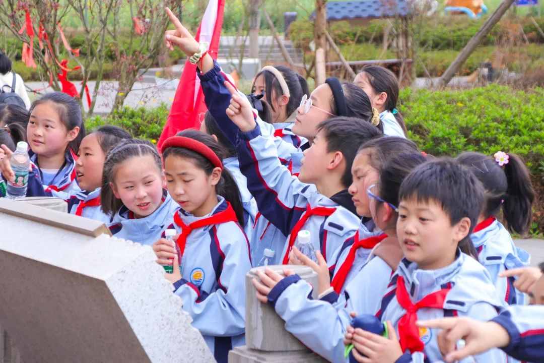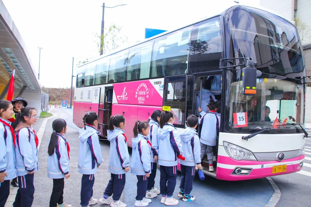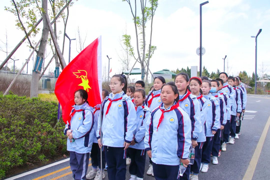 孩子们排好整齐的队列,跟随带队的老师们踏上了亲近家乡之旅。