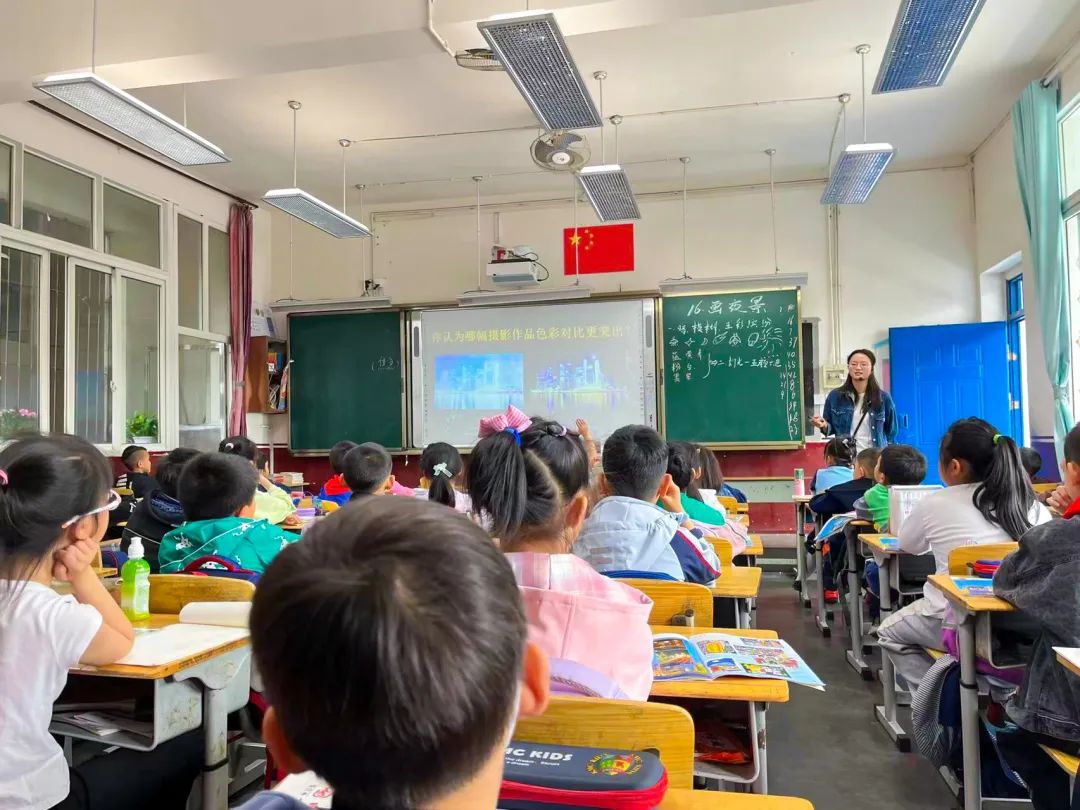 本次活动由鄢玉杰老师带来一节精彩的课例《画夜景》,课堂以一只名叫杰瑞的老鼠寻找不一样的夜景的童话故事拉开帷幕,全体学生都聚精会神,听得津津有味,学生跟着教师走进绘本的全新世界;随后,鄢老师通过图片对比及视频展示城市昼夜变化,循序渐进,层层引导学生去了解夜景的含义,使学生感受到艺术与文学美的结合,从而勾起学生的好奇心,激发他们学习美术和创作美术作品的兴趣。