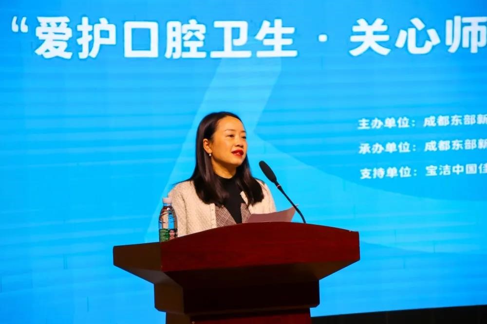 授牌仪式后,宝洁大中华区高级区域经理梁延、和黄商贸四川分公司项目经理冯丽分别发表讲话,希望捐赠能为东部新区师生提供物资帮助和精神鼓励,使他们以健康的体魄完成学业和工作,以自信的笑容面对未来的挑战。