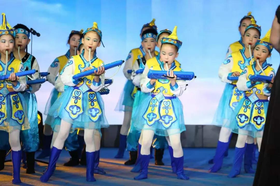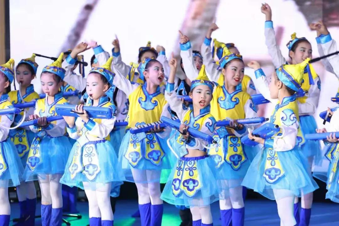 中华民族,是56个民族团结一心的民族,56个民族的人民心连心,手牵手,为祖国的繁荣富强携手共进。三岔湖小学的器乐合奏《欢乐的那达慕》欢快、明畅,以巴彦松布里的山脚下热闹欢腾的那达慕大会为内容,歌颂如雄鹰般矫健的草原勇士们,摔跤射箭、竞技骑马,高唱赞歌庆贺胜利。