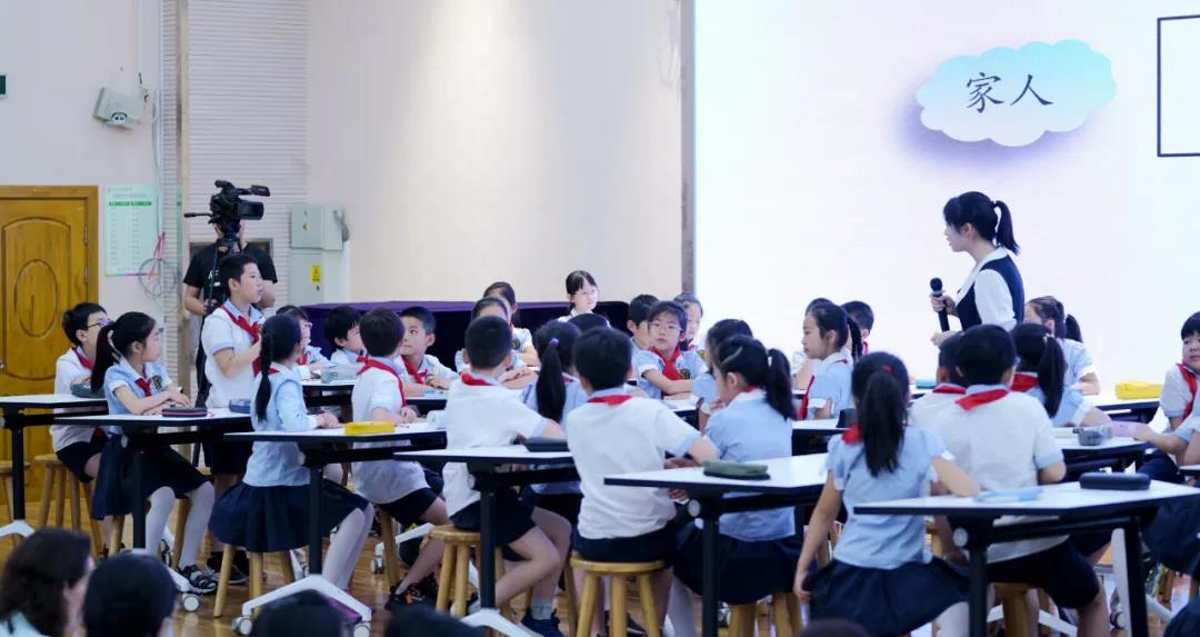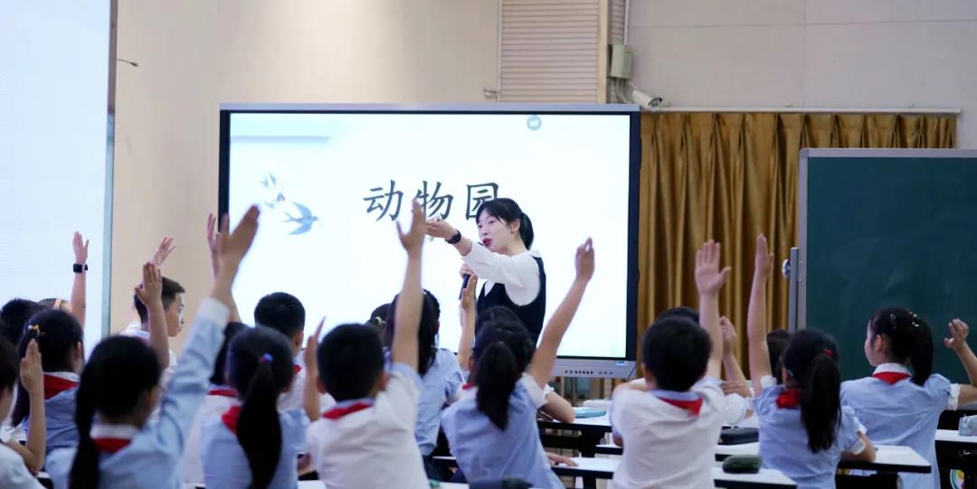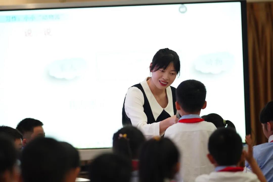 黄老师执教的是四年级上册习作课例《小小“动物园”》,教学设计环环相扣,逐层推进;巧设支架,突破难点。黄老师20分钟的前导课环节为:“以例入题——明确要求——趣说人物——巧拟题目——笔下生花”。她循循善诱,让学生发现介绍家人时可与动物关联,使表达更加生动;她紧扣童趣,让学生观看喜闻乐见的绘本,学习如何抓住特点把家人介绍得更加清楚;她巧用范文,让学生发现通过具体表现可以使家人特点更加突出;她关注表达,让学生在谈谈发现、介绍自己、说说家人的过程中训练口头表达;她善于追问,抓住学生交流时的表情,顺势追问学生在这个“动物园”的感受,指导学生拟定恰当的题目。在层层推进的课堂进程中,黄老师把学生引入了深度学习,让表达与思维并驾齐驱。