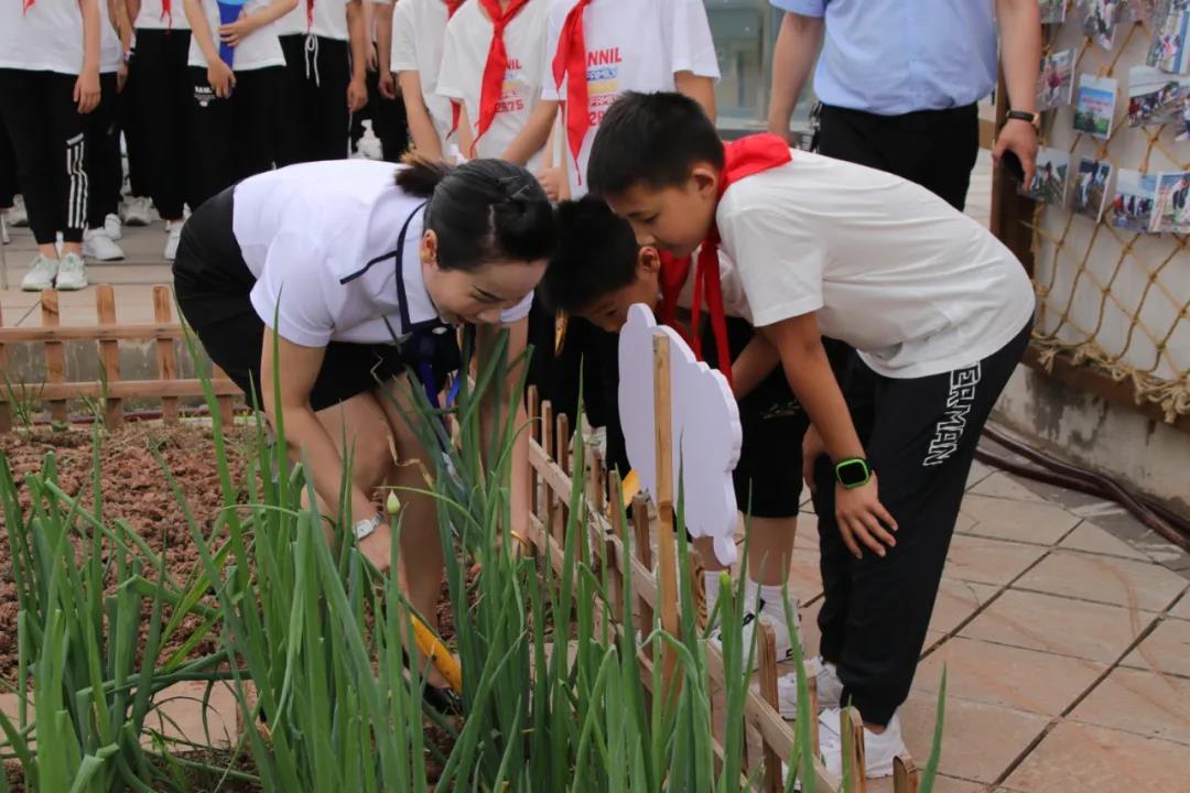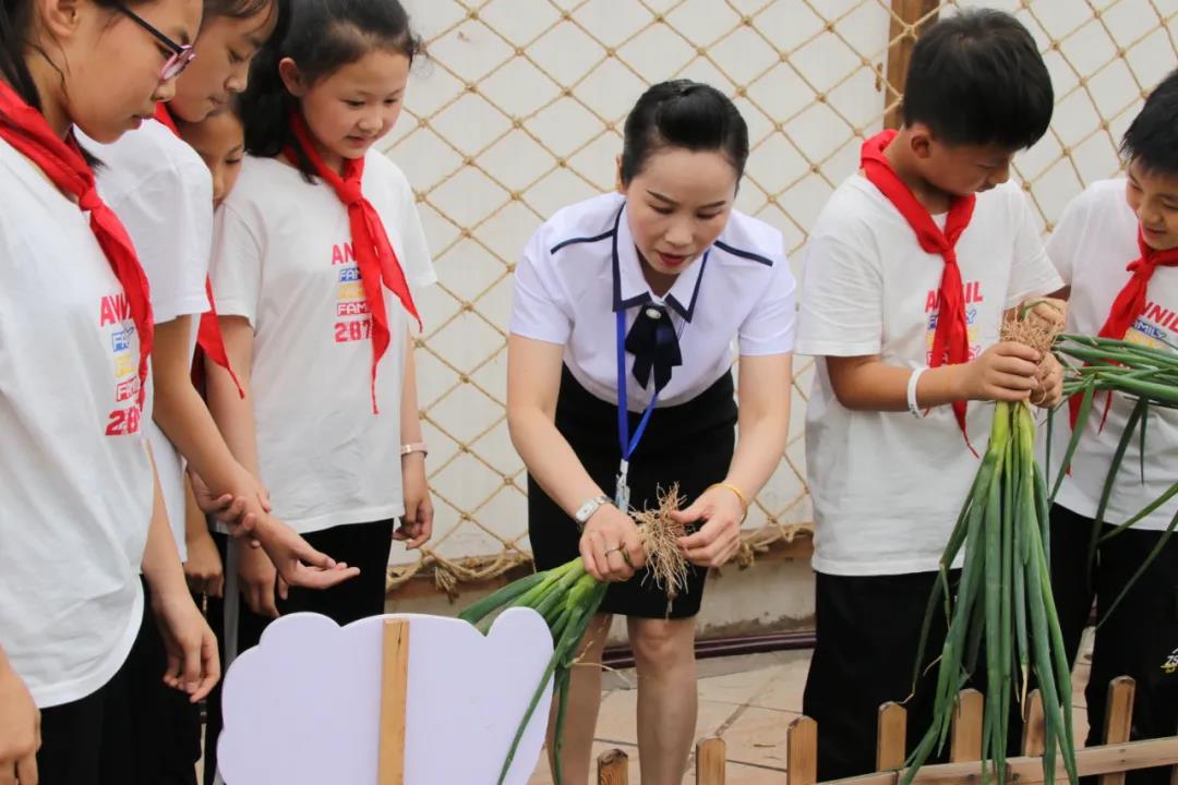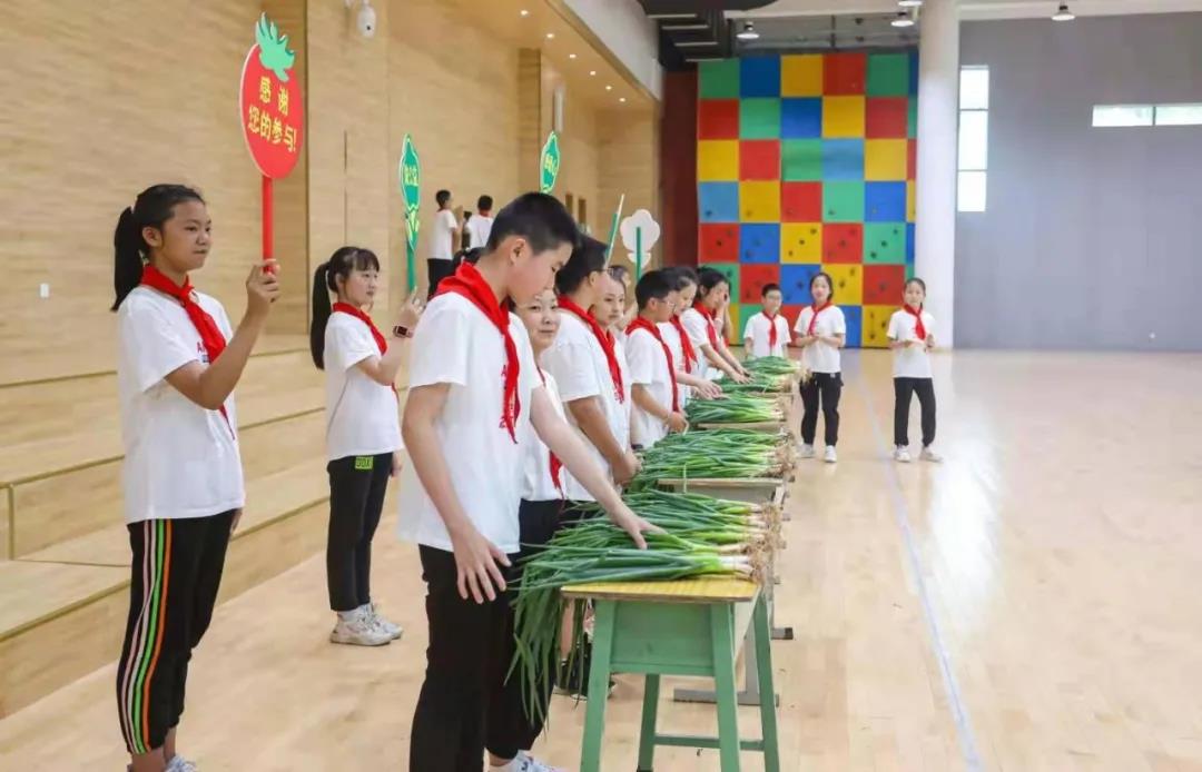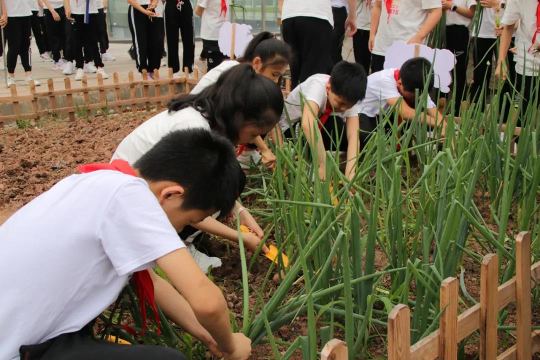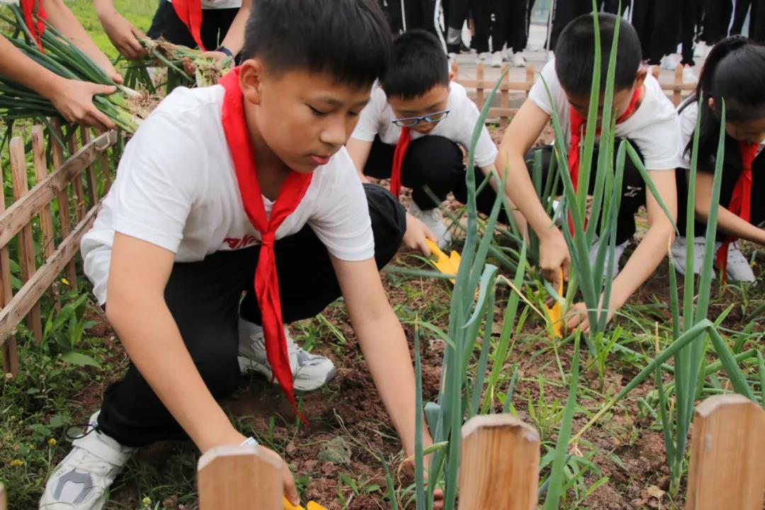 今年四月初,伴着莺歌燕语,三岔湖小学“思源农场”正式开园了,三至五年级各班均分得了“一亩三分地”。“童孙未解供耕织,也傍桑阴学种瓜。”同学们在劳动教育辅导教师和班主任的精心组织下,种下了新苗,播下了希望。经过近两个月的细心呵护:浇水、施肥、除草、捉虫,五(2)班的小葱由原来细小、嫩弱的幼苗长成了亭亭玉立的大葱,“长大成人”啦!同学们看到自己辛勤劳动换来的丰收景象,难掩内心的兴奋。