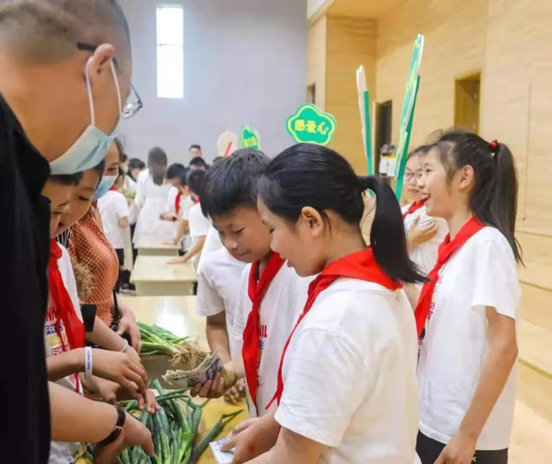 采摘结束后,同学们带着自己的“战利品”,来到义卖现场。义卖现场人气高涨,同学们把刚刚采摘的蔬菜放在展台上,做好义卖活动的准备。接连不断的吆喝声、耐心的讨价还价声、成功出卖的嘻笑声,声声入耳。第一次尝试卖菜,孩子们兴奋不已,每张小脸上都写满了喜悦和骄傲。孩子们在卖菜活动中不仅体验了“买卖”这一劳动的艰辛与不易,还让孩子们在劳动中锻炼和提高了表达和交际能力。参加活动的家长代表对该活动连连称赞。