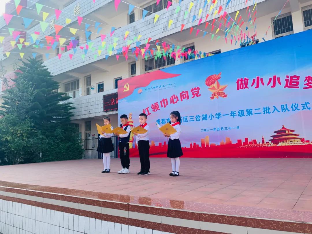 5月31日,为了增添少先队组织新鲜血液,激发少先队员们对少先队组织的自豪感和使命感,成都东部新区三岔湖小学在低小部操场上隆重举行了一年级学生第二批入队仪式。