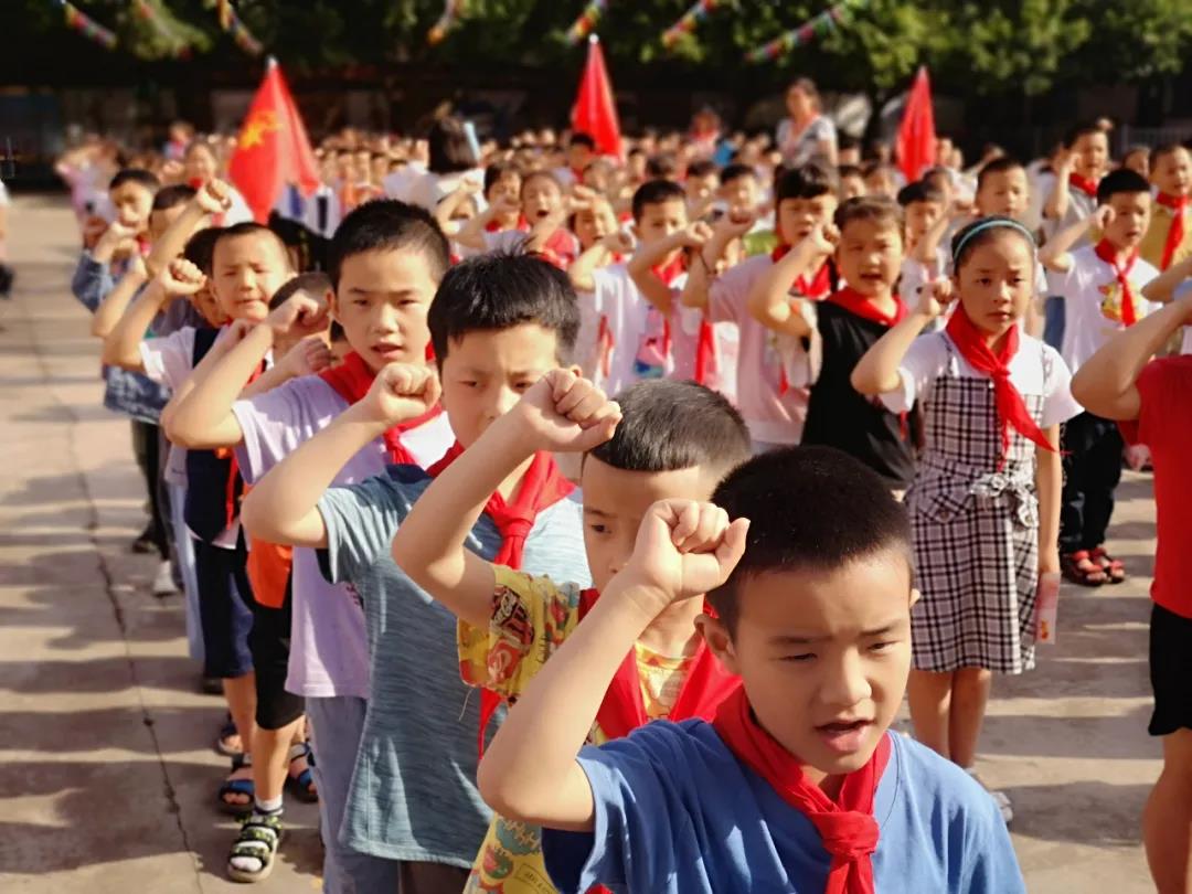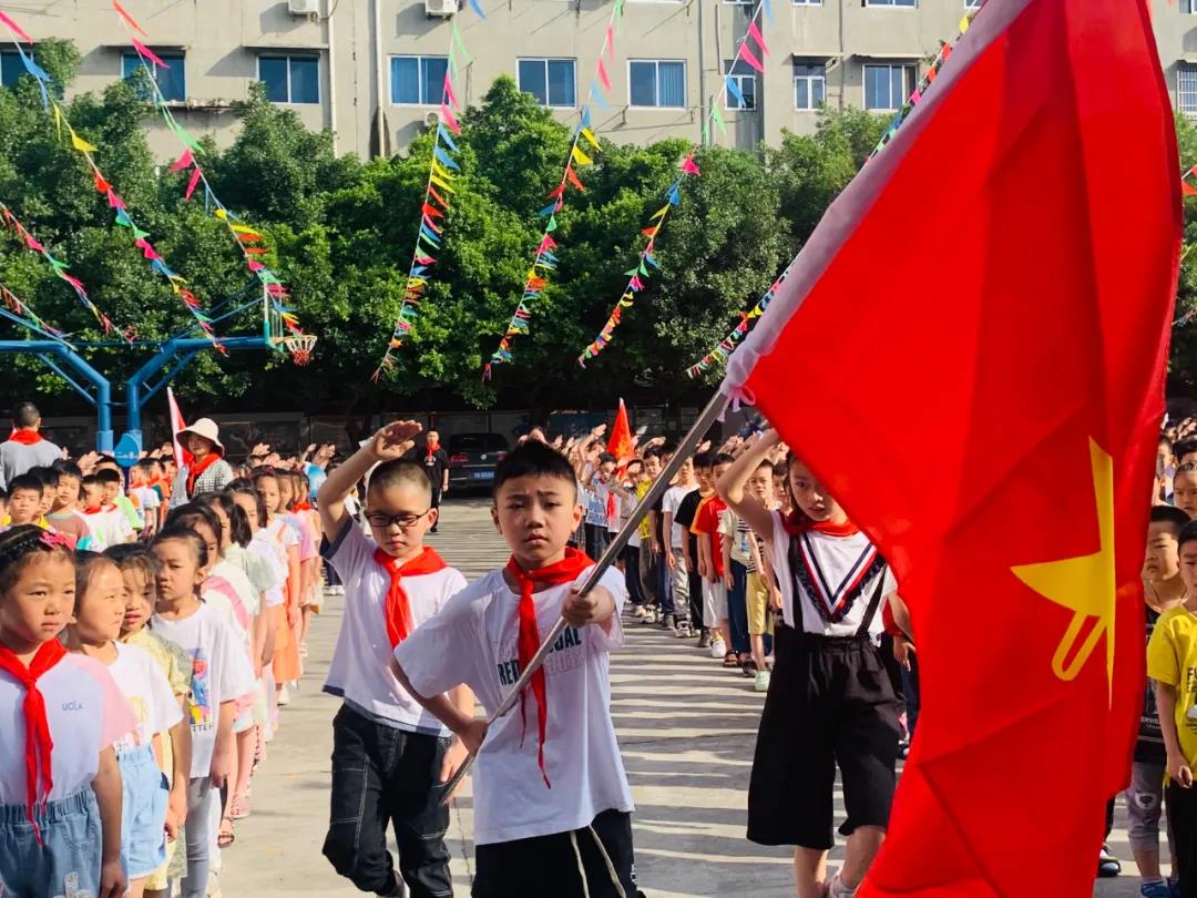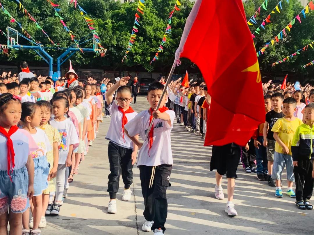 活动最后,在大队辅导员的带领下,小队员们举起右拳,庄严呼号,在庄重的退旗配乐中,入队仪式圆满结束