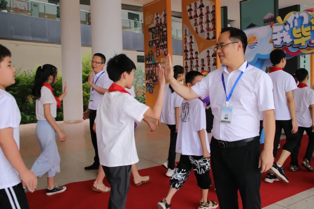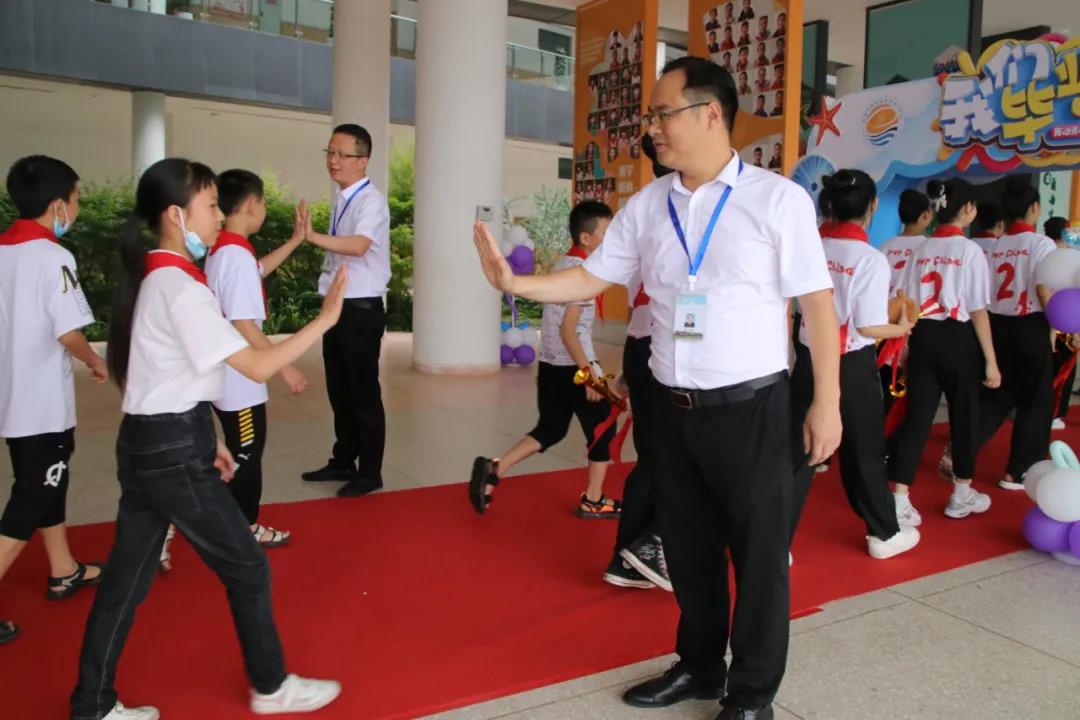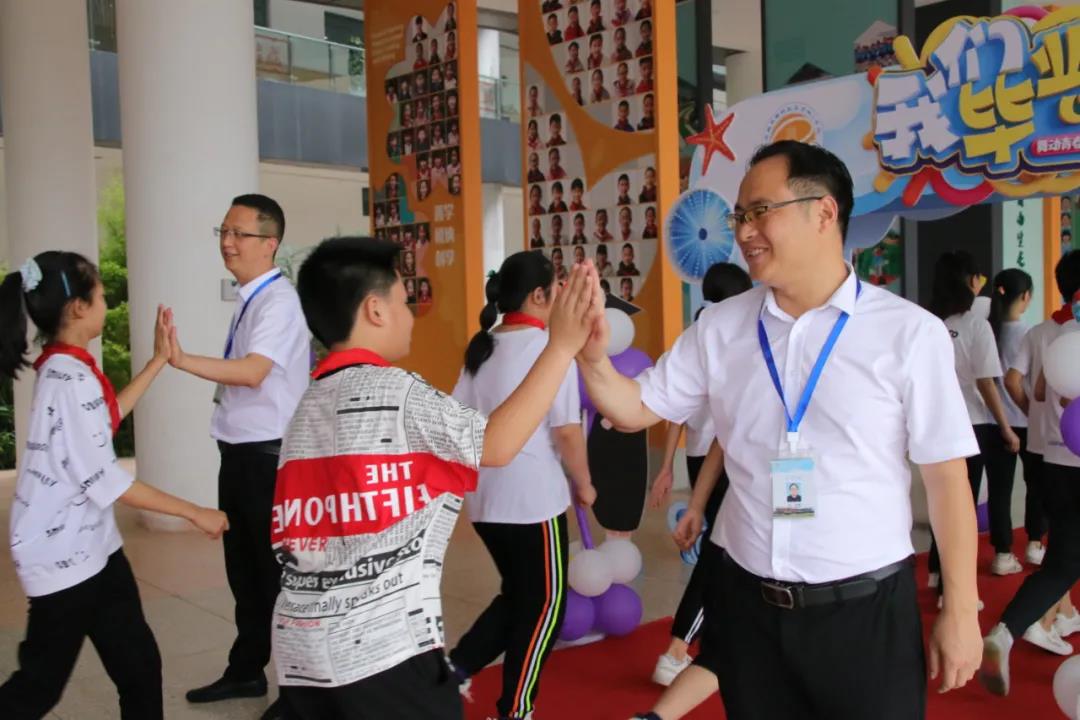 随后,在热烈的掌声中,汪校长、郭校长带领教务处胡建主任、德育处李健主任亲手将毕业证书发到毕业生的手中,并与孩子们亲切握手、一一祝愿。一本小小的毕业证书,见证着六年的汗水与付出,承载着六年的智慧和勤勉,更收录了无怨无悔的青春岁月。