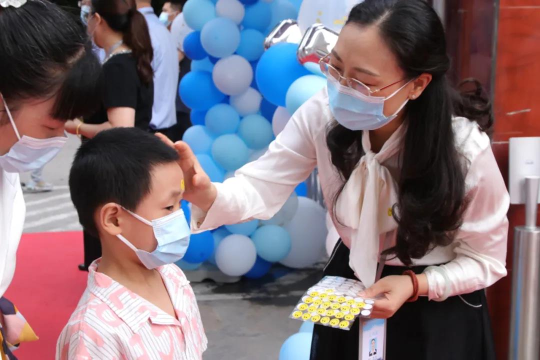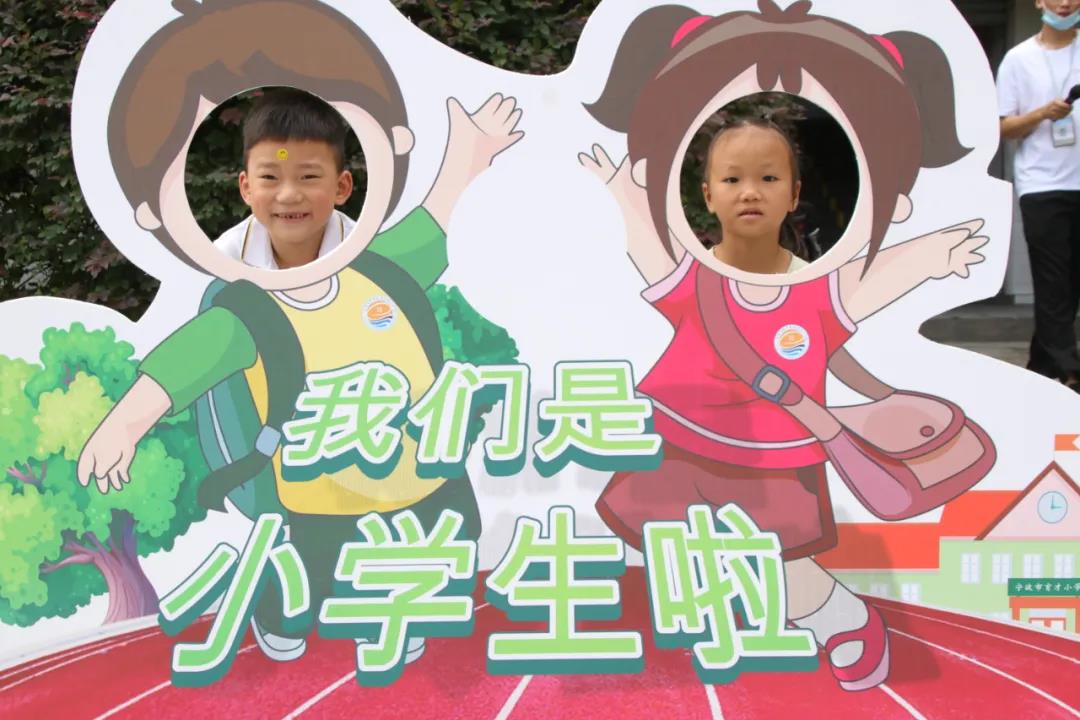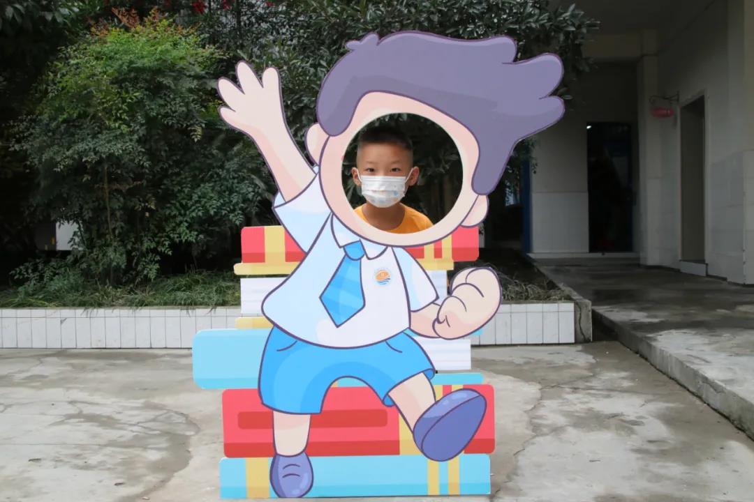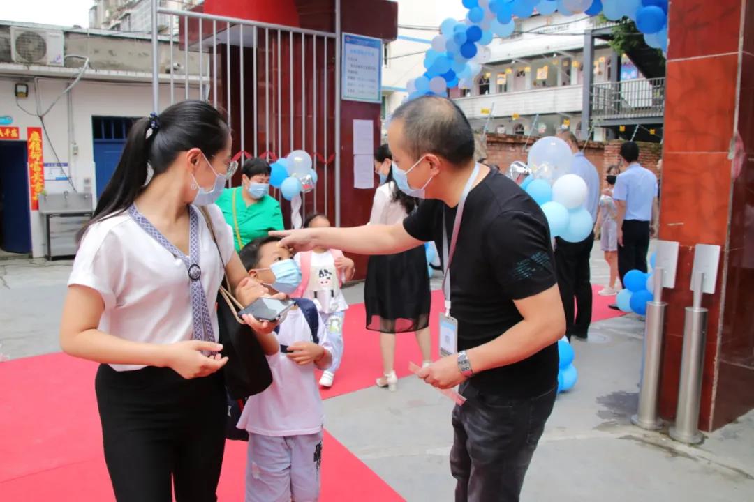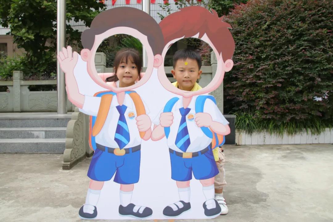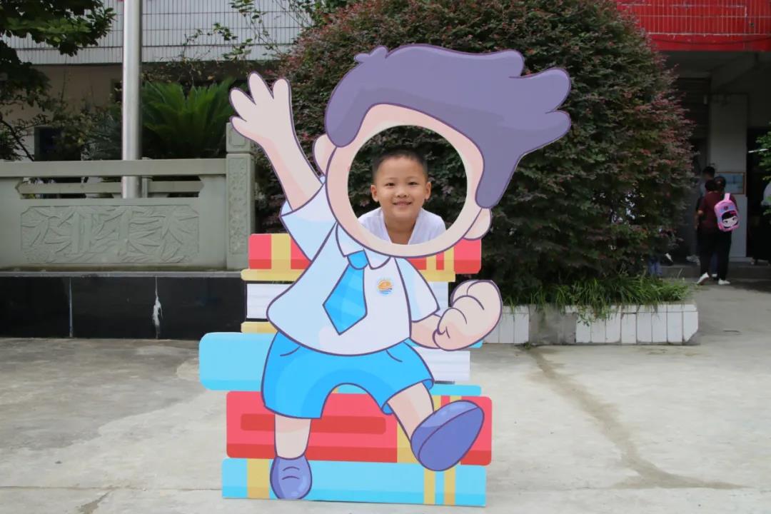 早上8:00,新同学在父母的带领下,带着一份期盼、喜悦和惊奇,踏着欢快的步子,踩着红地毯迈进了校园。操场上,卡通主题相框吸引着小朋友们纷纷驻足留影。