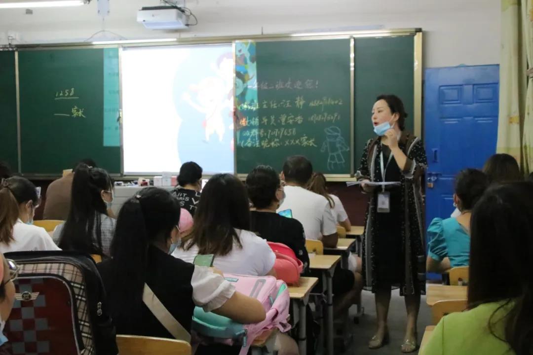 在充满温馨而童趣的教室里,老师、同学和家长进行了亲切的交流互动,班主任就新生的入学准备以及相关事宜作了具体的讲解。