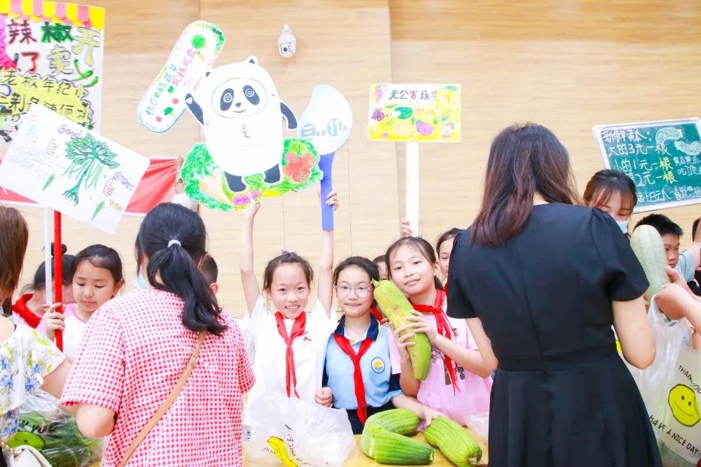 “快点!你快来帮我一下,我提不动了!”“你小心一点!这是我们好不容易才得来的果实!”“待会儿记得讨价还价啊!”……在孩子们你一言我一语的谈笑声中,我们来到了义卖活动区域——室内篮球场。只见各个家长志愿者翘首以盼,志在必得。待菜农们的菜品“上市”后,短短时间内就将蔬菜一抢而空。震耳欲聋的吆喝声,铺天盖地的还价声,此起彼伏的推销声……遍布场内,好不热闹。