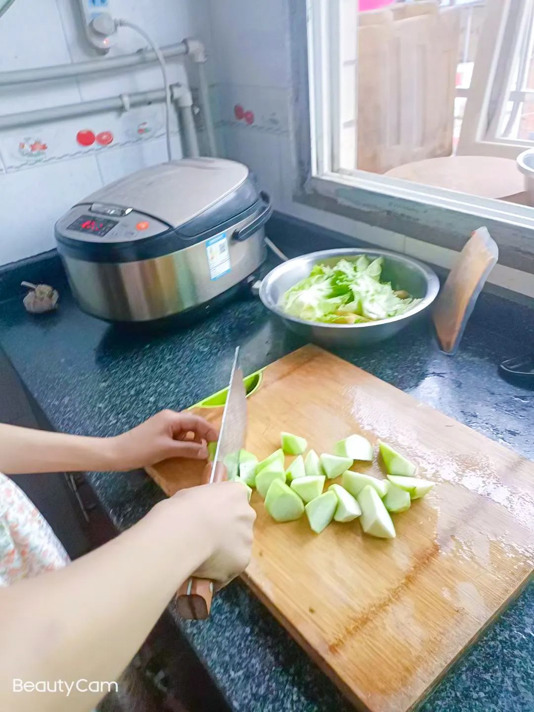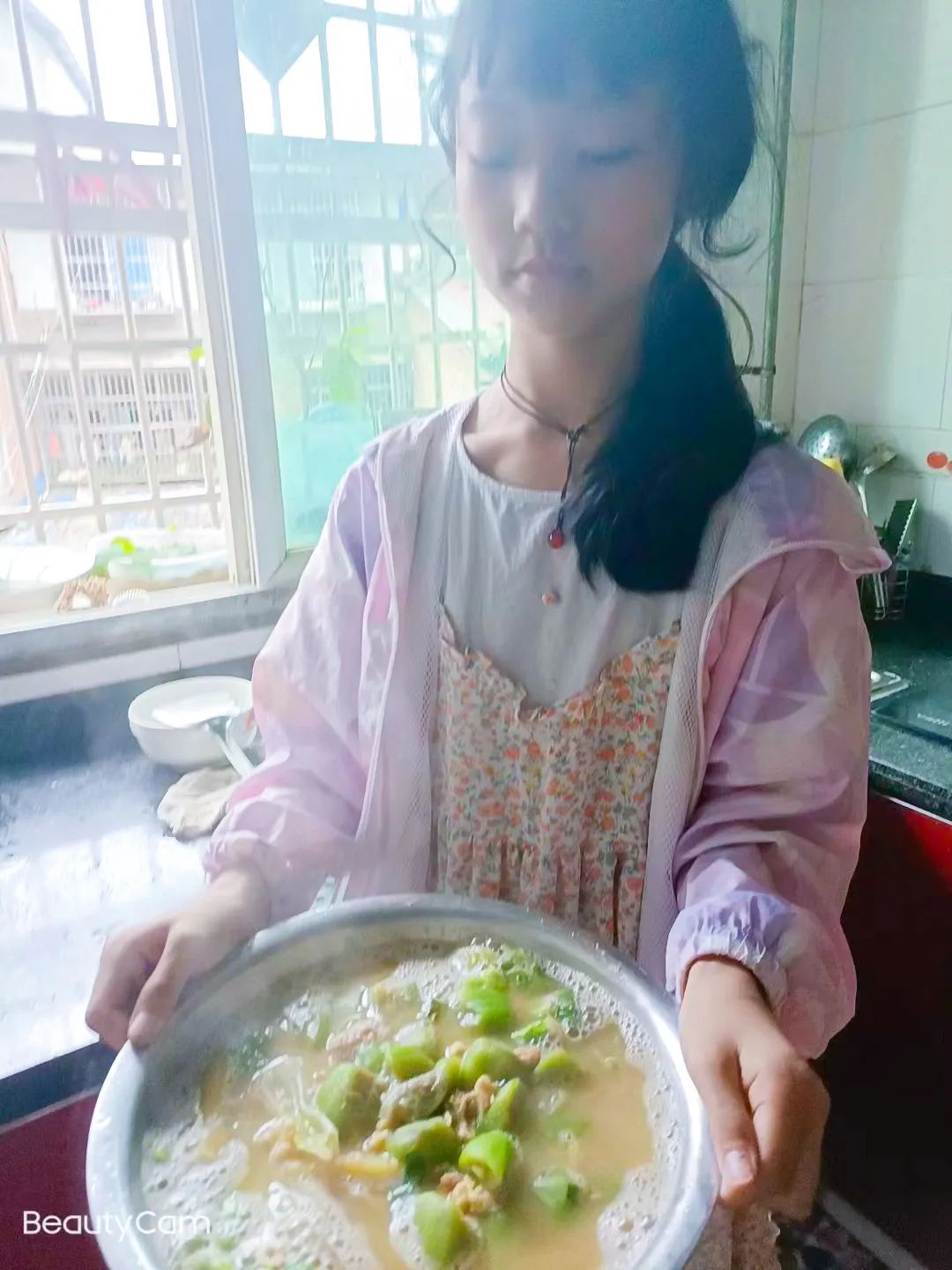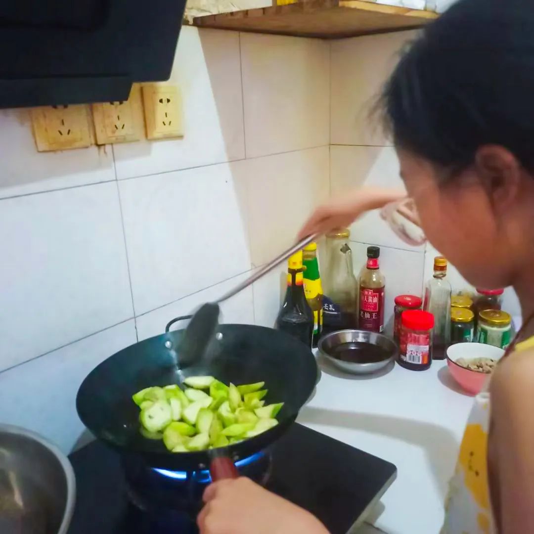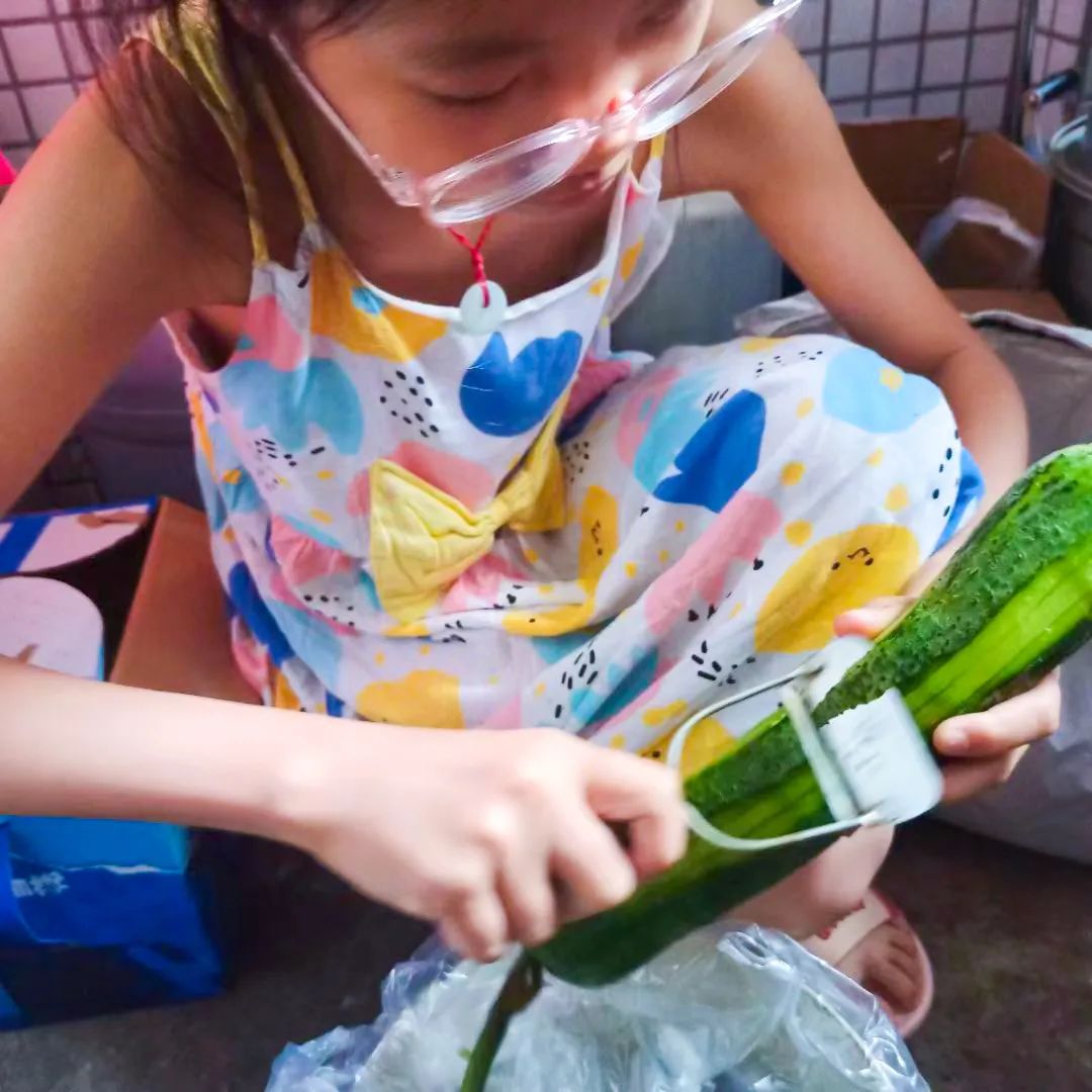 放学归家,孩子们个个变身“小厨师”,各显身手。小厨师们把家长从学校义买回来的蔬菜,饶有兴趣地清洗、刀切、翻炒,最后通过精致的摆盘,一道道香气扑鼻,令人垂涎欲滴的菜肴一一诞生。油炸茄盒、辣椒炒肉、凉拌黄瓜、丝瓜肉片汤……或许烹饪过程中的动作稍显笨拙,但最后吃着自己做的菜,那种满满的成就感和幸福感油然而生,别提多开心了呢!