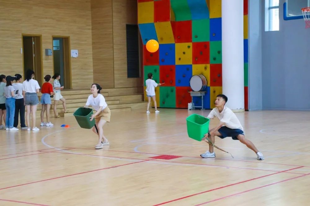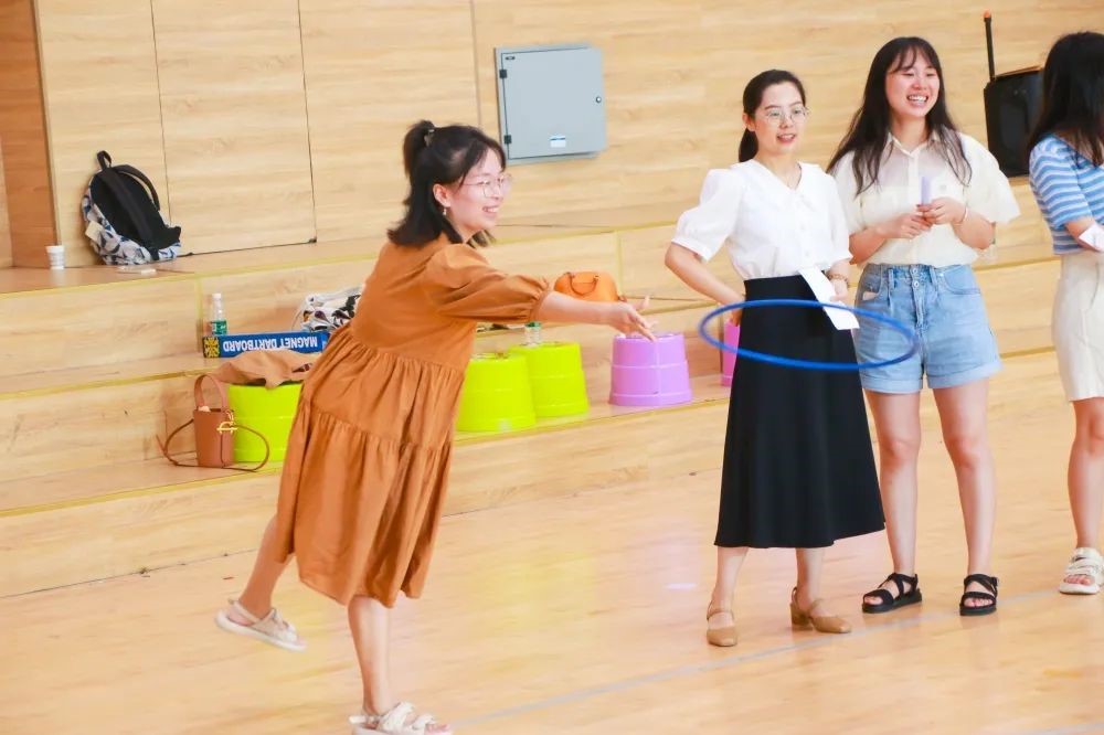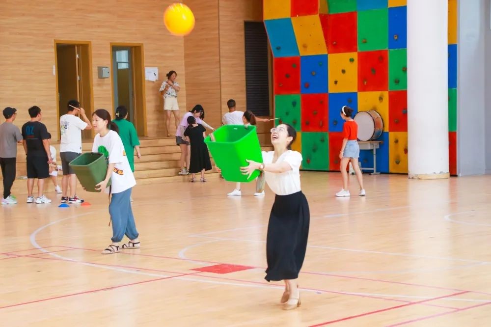 这些看似简单的游戏,却要身、心、手的完美配合。老师们积极参与,互相配合,游戏现场不时响起一阵阵欢笑声与呐喊声……