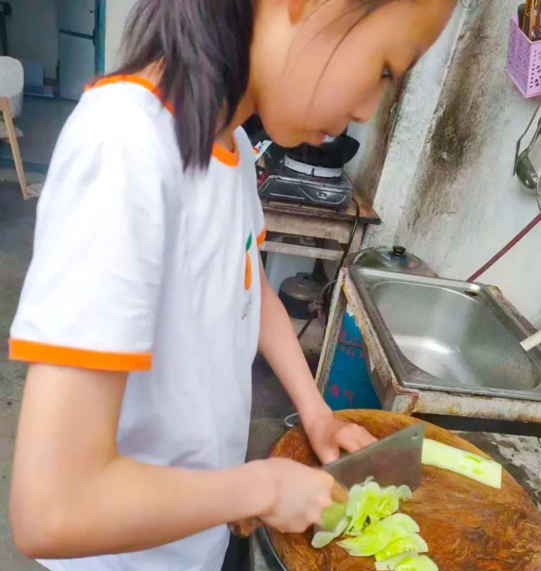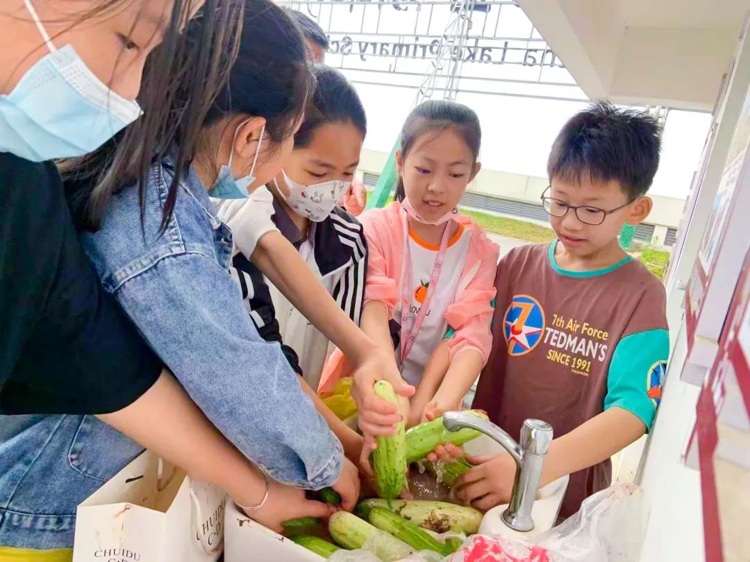 孩子们摘着、比着、笑着,农场里洋溢着欢声笑语。学习、生活,团结、协作,快乐、分享,在采摘活动中完美地融为一体,构成了一堂收获多多、体验满满的劳动实践课。采摘结束,晚上回到家,同学们再次发挥自己的才能,削皮、切片、调味、搅拌,将蔬菜变成餐桌上的一道道美味佳肴,再次在劳动中感受乐趣,在乐趣中收获成长。