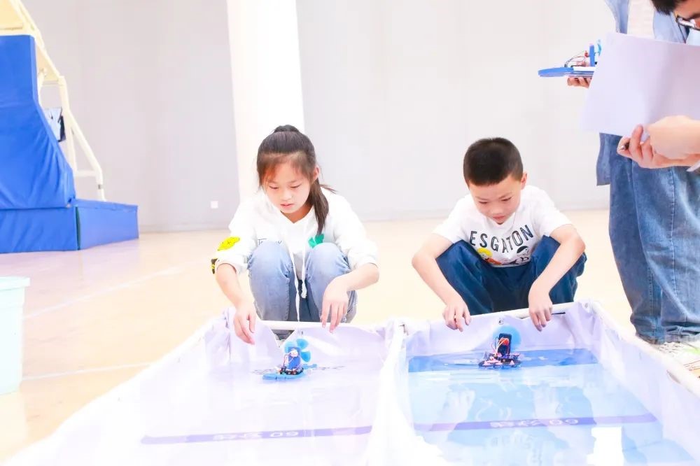 本次比赛有龙舟竞渡和智慧工程两个项目。赛前,学校信息技术和科学组的老师们集体研究机器人组装,为后续孩子们的实践操作提供了技术保障。在比赛的前几天,学校组织参赛同学在环湖蓝色大厅进行了专项培训。培训时,夏老师给同学们讲解了机器人组装的要点、如何控制机器人前进的时间以及比赛的详细规则,参加培训的同学们都听得非常认真并详细记录下要点。培训结束后还有很多同学意犹未尽,将自己在培训过程中的疑惑积极地向老师询问。