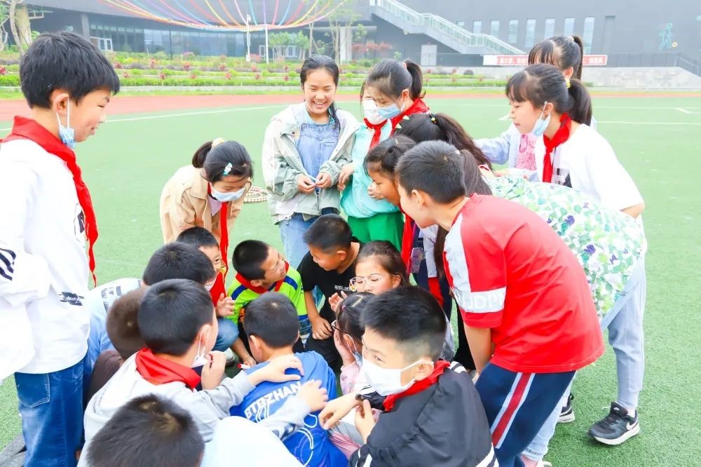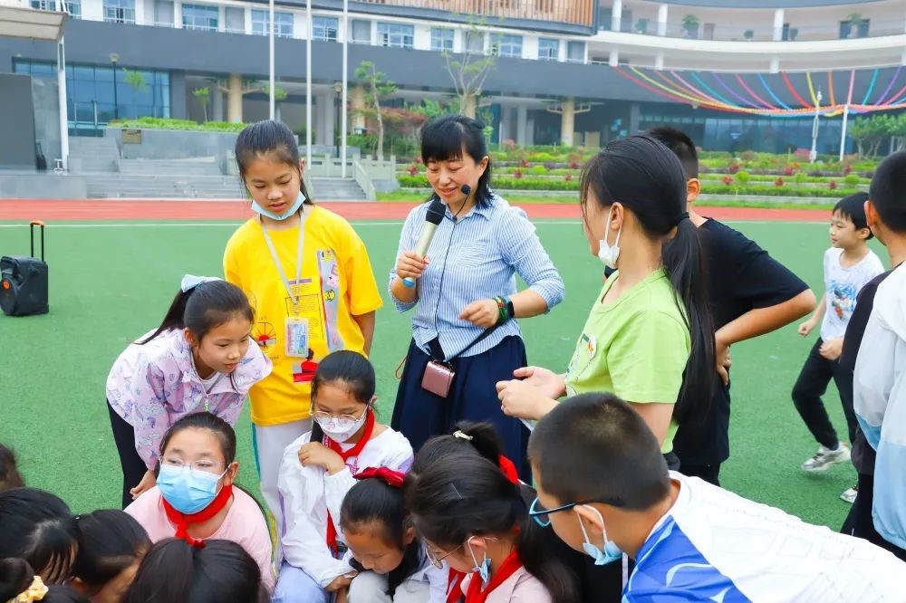 最后,刘丽老师邀请同学们分享活动体验,并将自己的活动感想与期待写在纸上。在操场上,同学们用这张满载着期待与欢乐的纸,折出一架架纸飞机,共同在欢声笑语中放飞。
