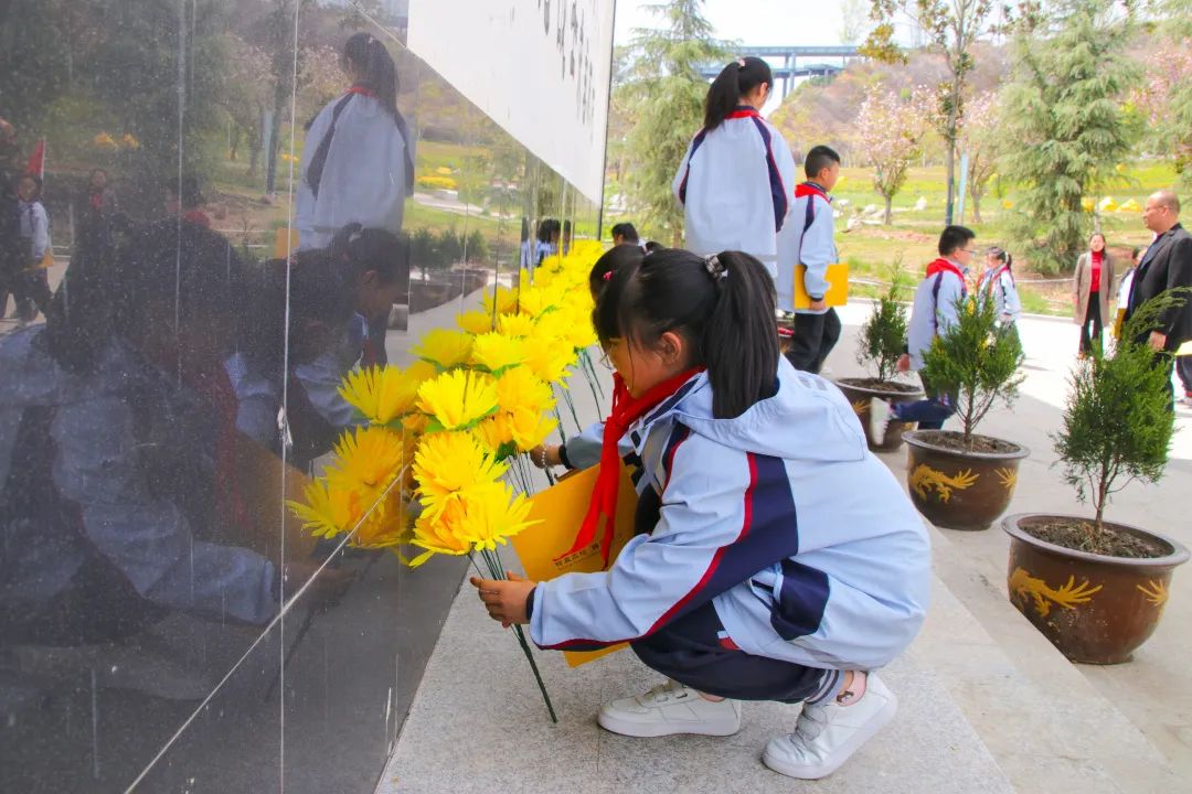 清风拂松柏,清明祭忠魂。为了缅怀因修建三岔水库而英勇献身的先烈们,引导少先队员们继承和发扬不怕牺牲、艰苦奋斗、无私奉献的“东灌”精神,3月30日下午,我校在三岔水库主坝旁的“都江堰龙泉山水利工程纪念碑”前开展了“缅怀建设先烈 传承东灌精神”致敬先烈清明节主题活动。德育处主任李健、副主任汪霞、学生代表参加了此次活动。