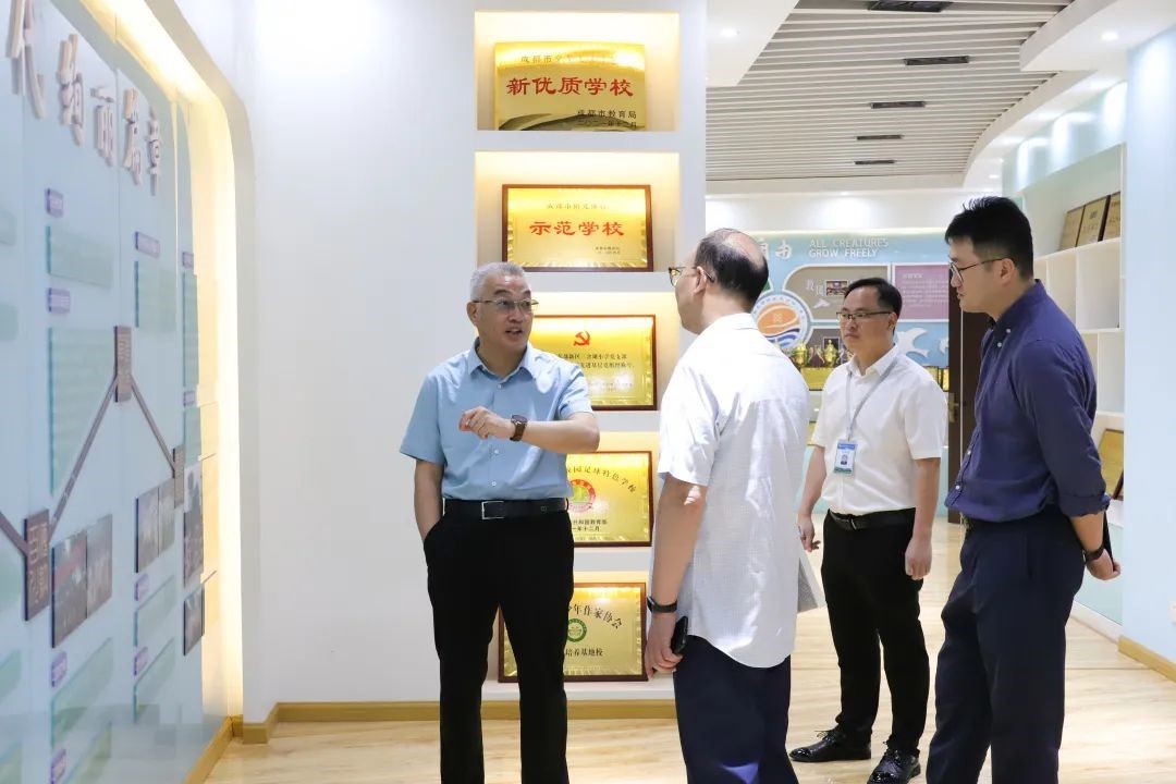 专家组在东部新区教育处王引老师、三岔湖小学校副校长汪辉勇及学校行政人员的陪同下参观校园。