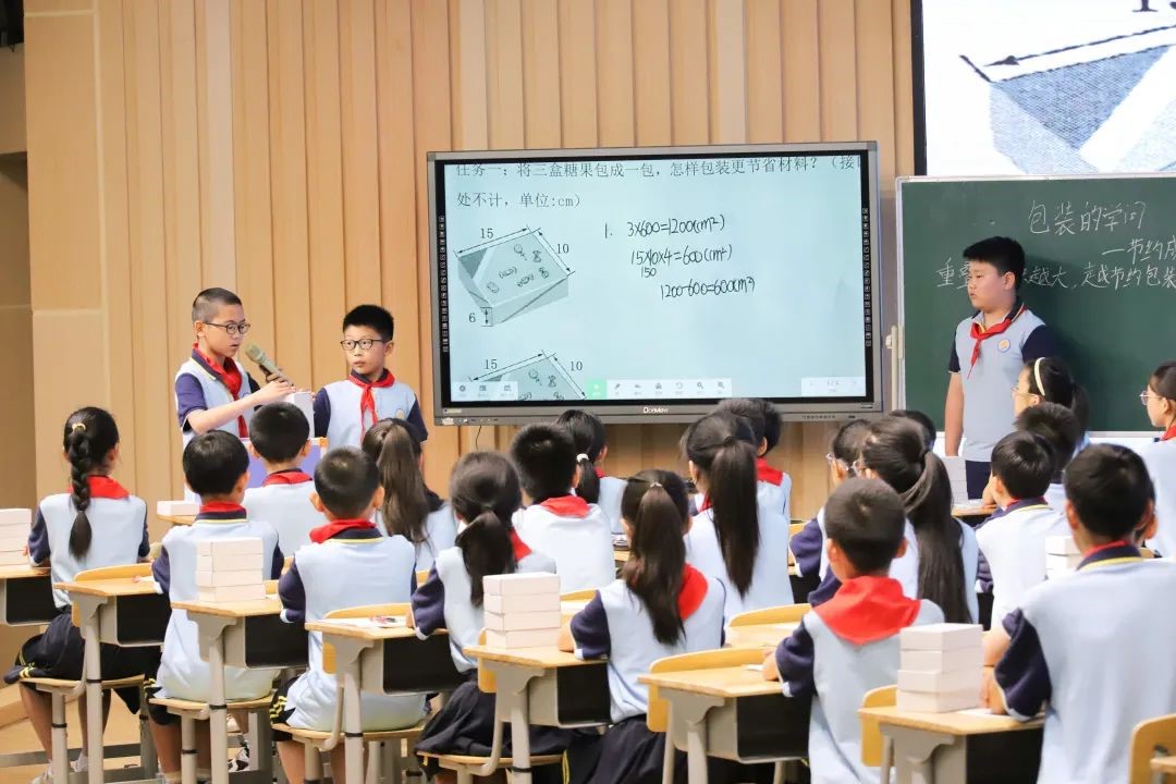 张老师的课堂以学生为中心,通过老师精准导,学生自主学,让数学问题链接真实生活。课堂上孩子们变成一个个包装小达人。