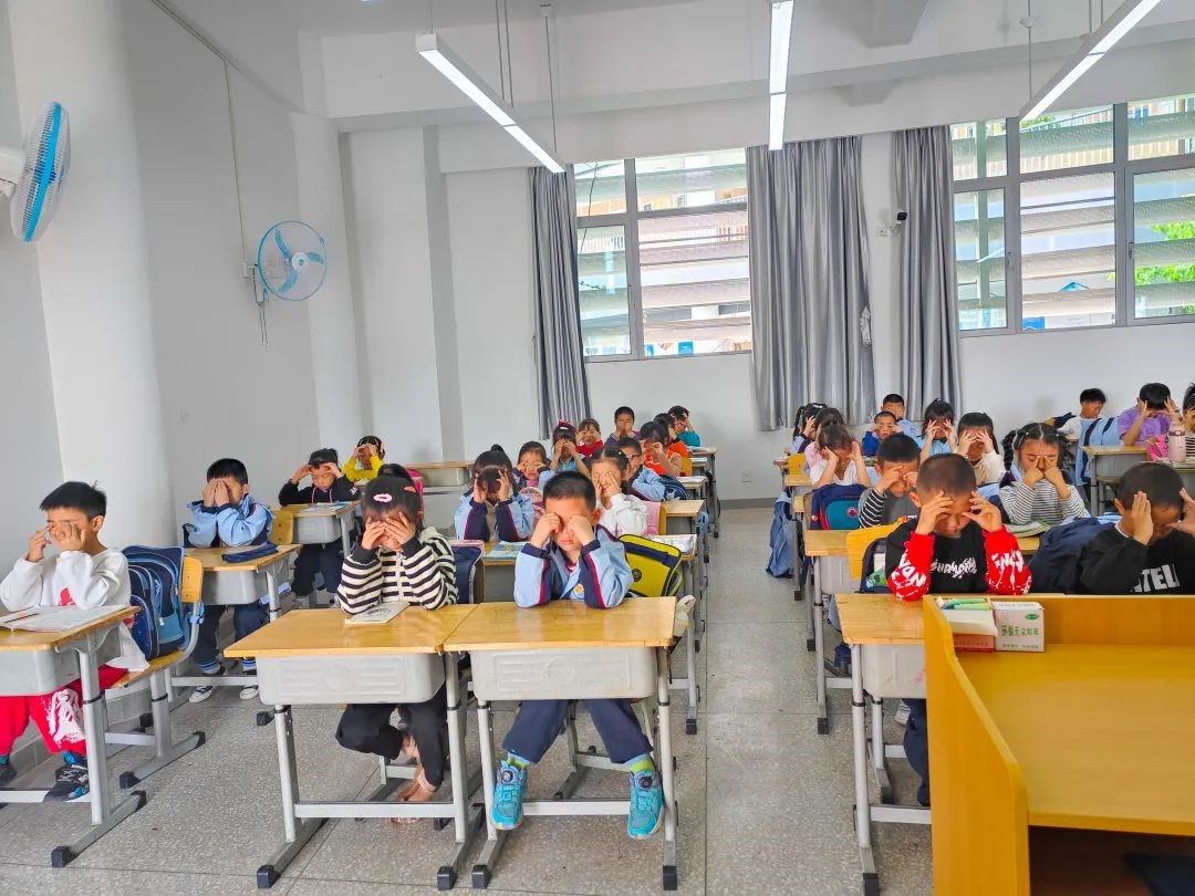 下午四点,学校组织各班进行了集会、课间操队列演练。演练开始信号发出后,班主任站在教室门前迅速组织排队,在确保安全的前提下力求做到“快、静、齐”。然后,在老师的带领下,各班队伍安静整齐、有序快速地走到操场指定地点。